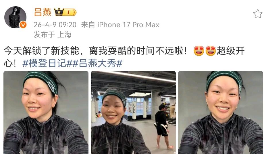 4月9日上午9:20的时候,吕燕在个人账号晒出了自己的最新运动照。照片中的她,虽