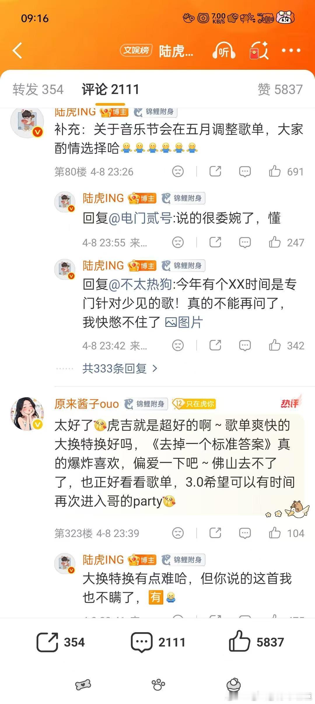 陆虎回应歌单 4月24到25号佛山首站,刚好撞上陆虎生日,一边听歌一边陪他过生日,这种双向奔赴的感觉真的太好