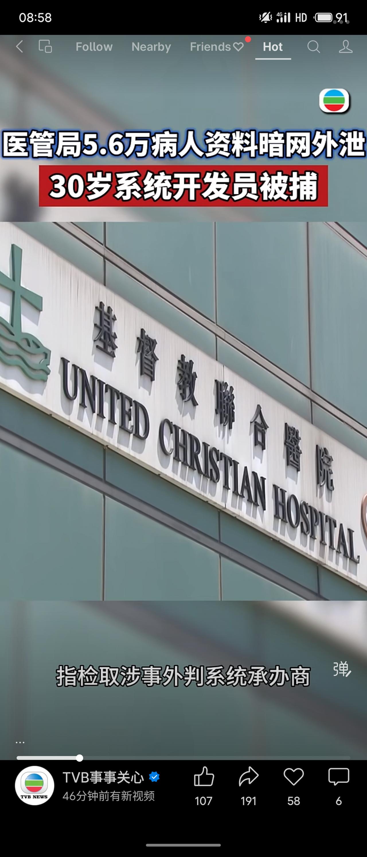 香港医管局5.6万病人资料在暗网外泄,涉事外判系统承办商的一名30岁开发员被捕。