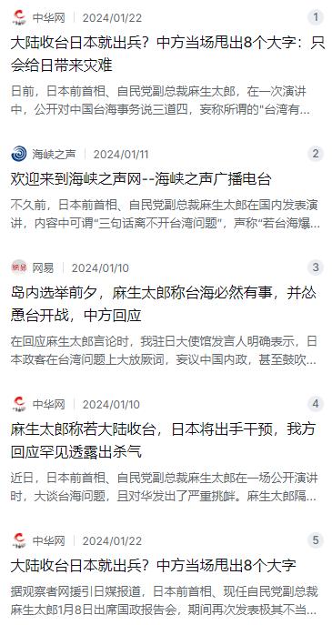 我们先来看看日本这几年到底在台海周边布了多大一个局。就在前不久,日本前首相、自民党副总裁麻生太郎又在大放厥词,说什么“台湾有事”必然会发生,而且这将成为事关日本生存的危机事态。麻生甚至叫嚣,如果不让台湾作战,那么日本将很难救助在台湾的日本人。说白了,这些人已经把“台湾有事就是日本有事”挂在嘴边好几年了,从安倍活着的时候就一直在提,现在更是不加掩饰了。问题是,台湾跟日本有什么关系?无非是日本想把台海局势跟自己的国家利益强行捆绑,为自己扩军找个“名正言顺”的理由罢了。中国驻日本大使馆当时回应得就很直接,说日本政客这么搞完全是不自量力,心怀不轨,中方绝不可能坐视不管。话虽然短,但分量很重。