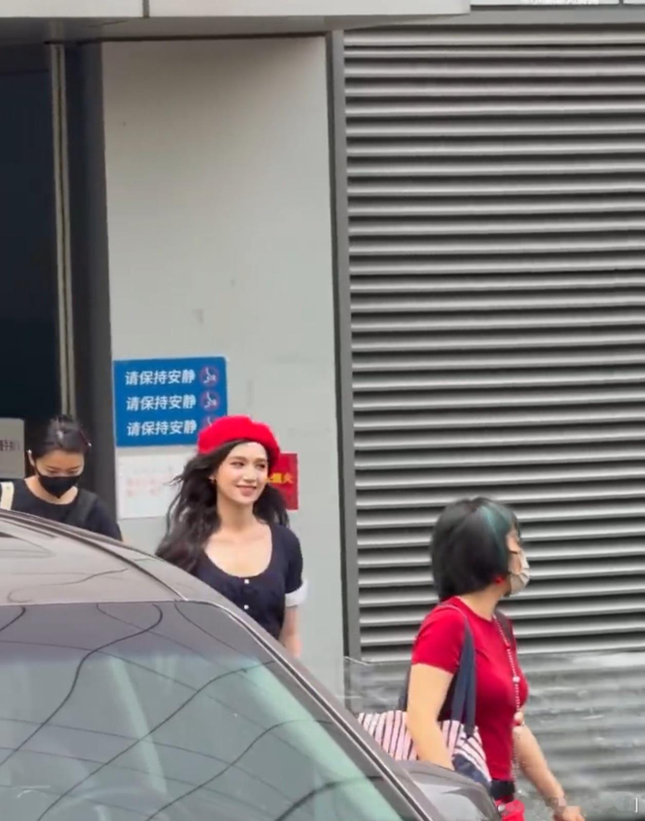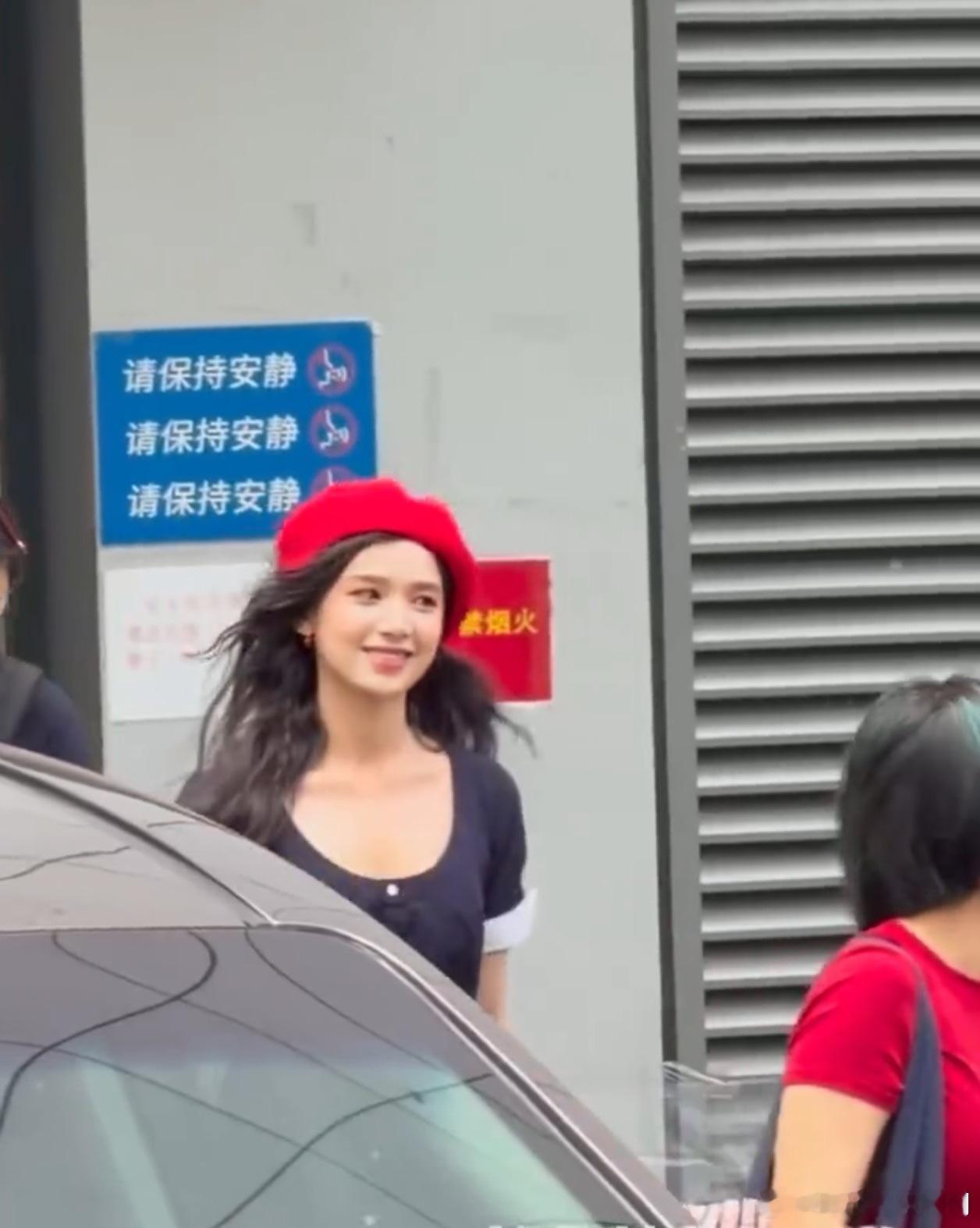 甜妹驾到!张婧仪hi6红色贝雷帽配蓝裙,上班路透氛围感拉满!张婧仪hi6红色贝雷