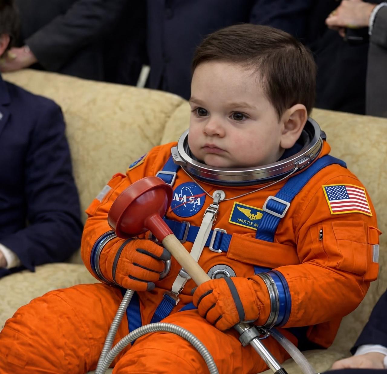 这张Artemis II宇航员版本的baby卢比奥,最大的笑点在于他手上的那把皮搋(chuāi)子。众所周知,飞船发射后不久,马桶出了问题,于是,卢比奥又多了一个疏通飞船马桶的任务。