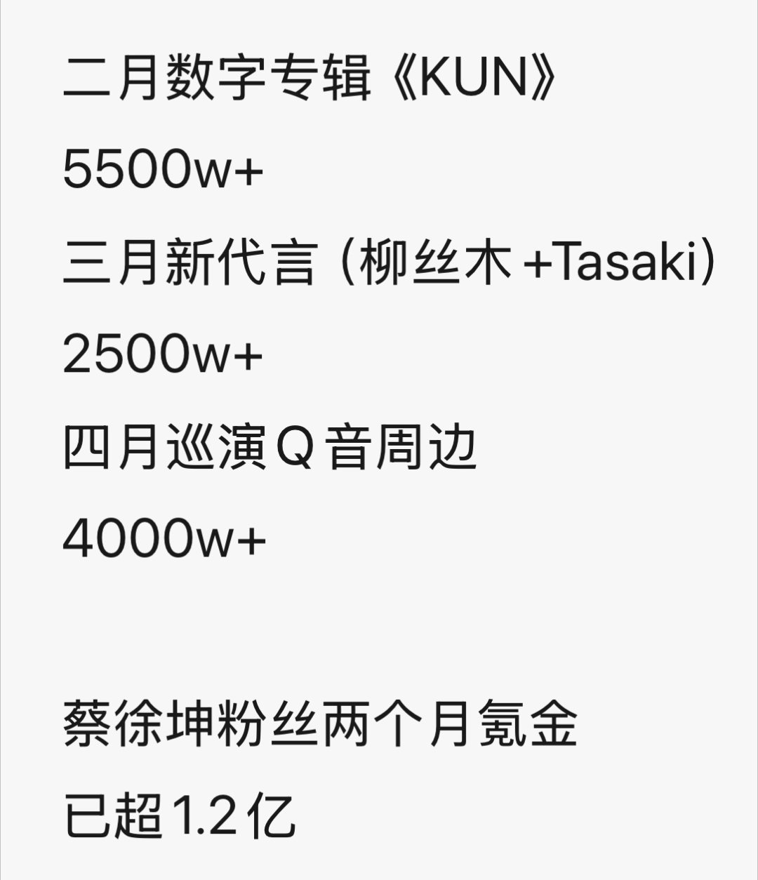 蔡徐坤顶流的第八年 短短几天巡演周边销售额已超4000w 蔡徐坤粉丝近两月氪金超1.2亿 吸粉能力和商业价值真的太牛了🔥🔥