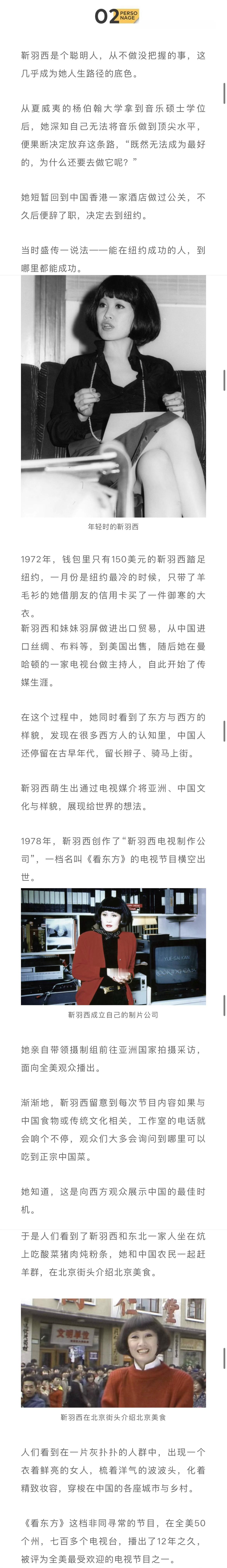 拼搏一生,她活得热烈。她曾是传媒行业的先锋,通过电视媒介将亚洲、中国文化与样貌,