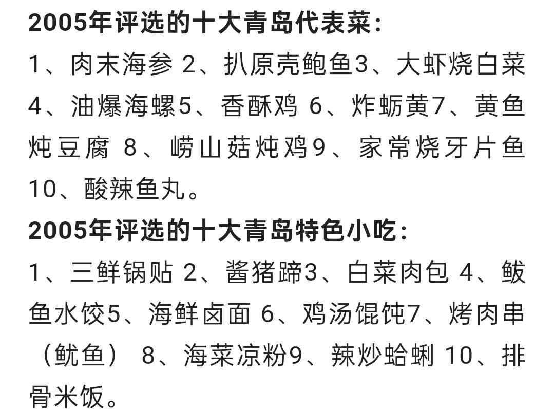 1996年,2005年由青岛银评选出的青岛十大特色名吃、十大青岛特色代表菜。