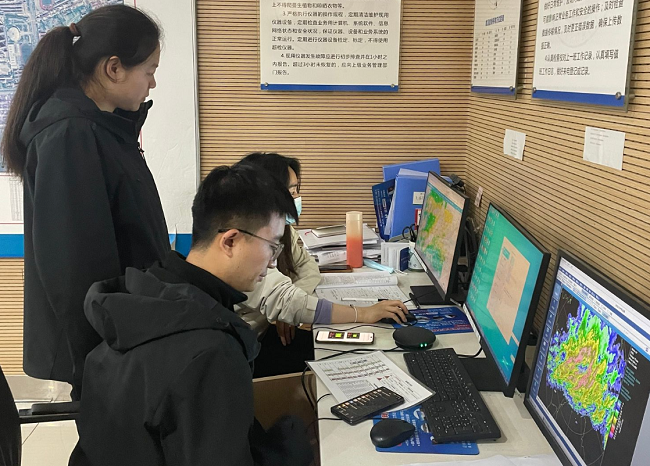面对本轮强降雨过程,市气象局提前启动应急响应,及时发布暴雨橙色预警信号。“我市后湖管理区1小时降雨量已达30毫米,预计出现8-9级雷暴大风,未来3小时强降雨仍将持续,请注意防范!”凌晨3点钟,气象服务叫应的电话声、键盘敲击声与研判讨论声交织在一起。预报员反复核对雨量数据,与省局首席连线分析天气形势,滚动更新预报结论,不放过任何一个细微的天气变化;按照递进式服务流程,通过电话、短信等多种渠道,精准叫应受影响乡镇(街道)党政领导及防汛相关部门负责人16人次。在“第一时间”传递最新雨情与风险研判的同时,持续与住新部门联动,共享雨情数据,研判城市内涝点积水变化,为排涝设施启动提供实时气象指引;全力做好电力、化工专业气象服务,点对点研判气象风险,筑牢气象防灾减灾第一道防线。