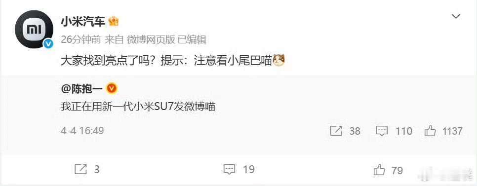 小米SU7居然能发微博了!什么时候YU7也同步上线这个功能?微博小尾巴已不再显示