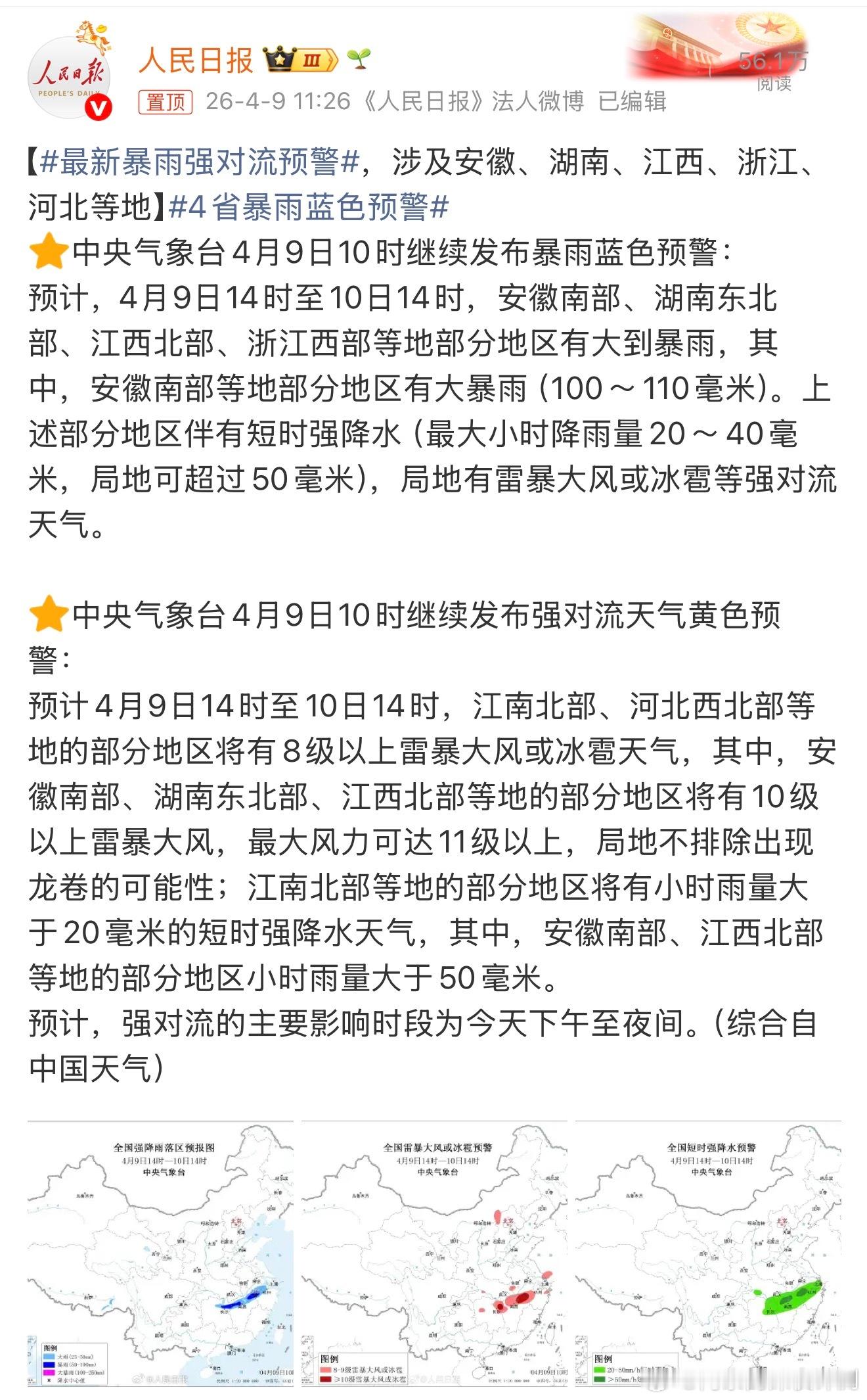 最新暴雨强对流预警武汉的大雨可算小了,工作室周围又淹水了看了一眼天气预报,这波暴雨应该是继续南下了!
