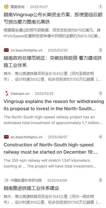 第二是没成熟施工体系。越南连靠谱的建筑公司都找不出来。2025年底,越南首富范日旺的Vingroup集团好不容易凑了六十多亿美元,想接下南北高铁项目,结果协议签完八天就撤资了。Vingroup可是越南最大的民营企业,连它都玩不转,其他人更不敢接。高铁这玩意儿不光是钱的问题,管理、技术、供应链、质量把控,缺哪样都不行。越南现在既没钱又没经验,还想跳过所有中间环节一步登天,哪有这种好事?