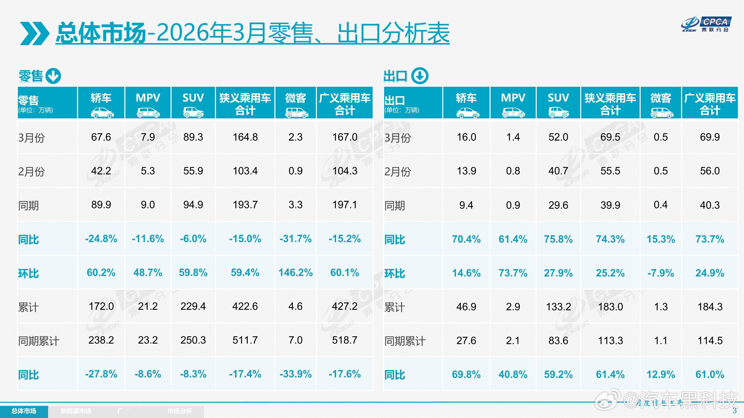 中国汽车出口持续狂飙 翻看乘联会3月数据,最提气的亮点无疑是出口板块:乘用车出口达69.5万辆,同比猛增74.3%,环比也劲升25.2%。这不单是销量数字的刷新,更是一场规模与结构的双向跃迁。尤其新能源战线爆发力十足,3月出口34.9万辆,同比飙涨139.9%,在整体出口中占比破五成,达到50.2%。更值得注意的是,插混与增程车型增速领跑全场,在海外市场越来越受追捧。当国内车市略显疲软时,出海赛道强势扛旗,有力对冲了内销压力。肉眼可见,自主品牌的全球化正明显提速,且早已告别单纯走量阶段,转向价值与结构的同步升维。大家觉得中国车企在海外市场的天花板有多高?