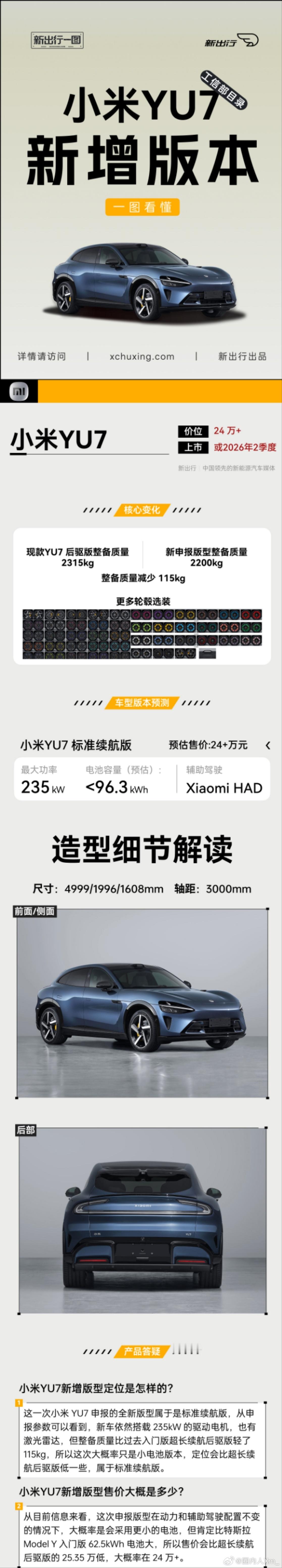 小米yu7入门级版本 刚刷完工信部最新公告,关于小米YU7新版本的所有核心信息,