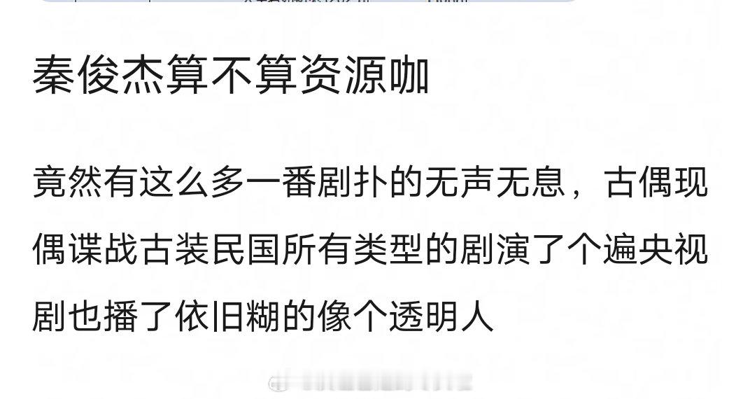 秦俊杰算不算资源咖?谋男郎出身,竟然有这么多一番剧扑的无声无息。古偶、现偶、谍战