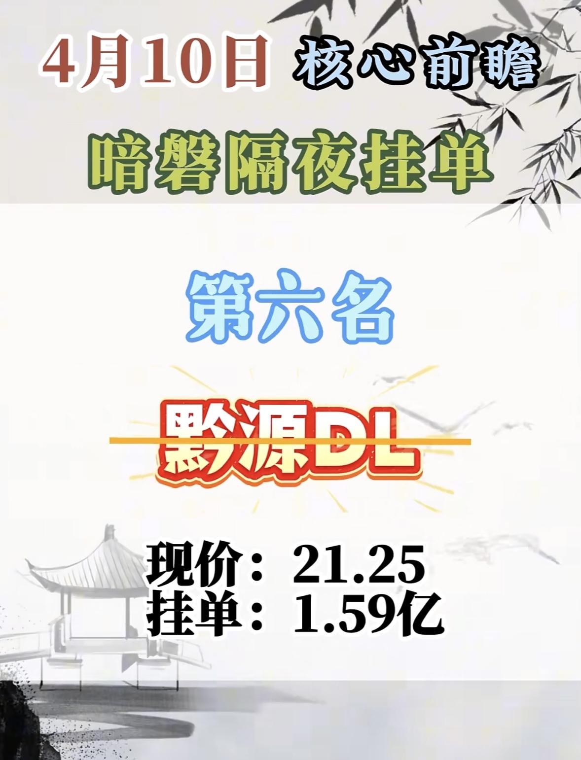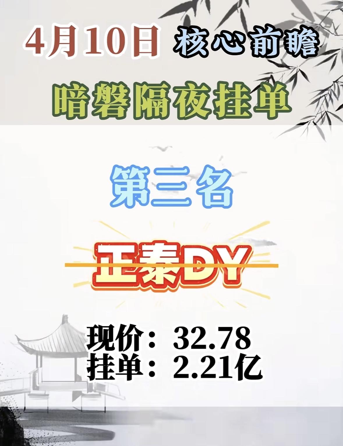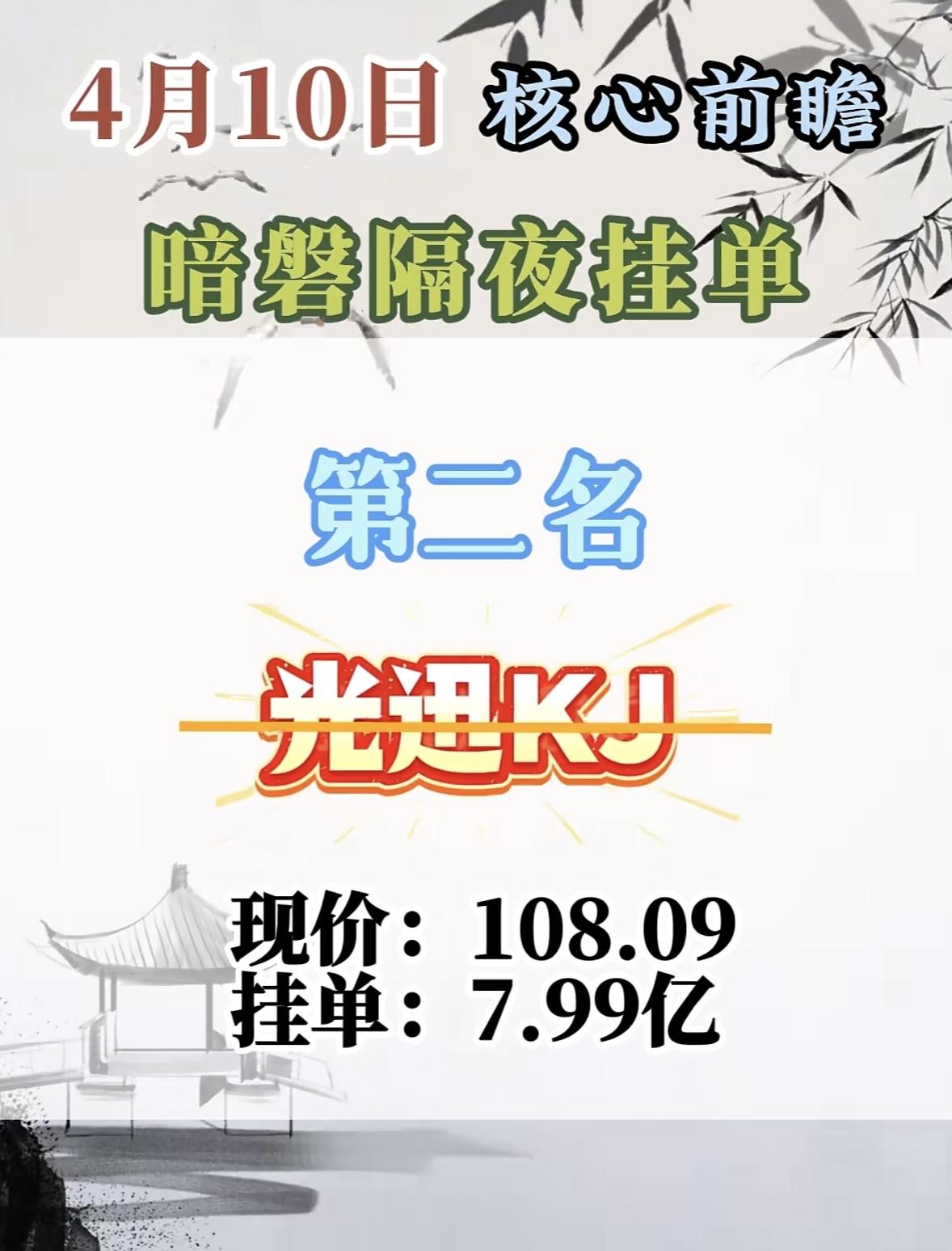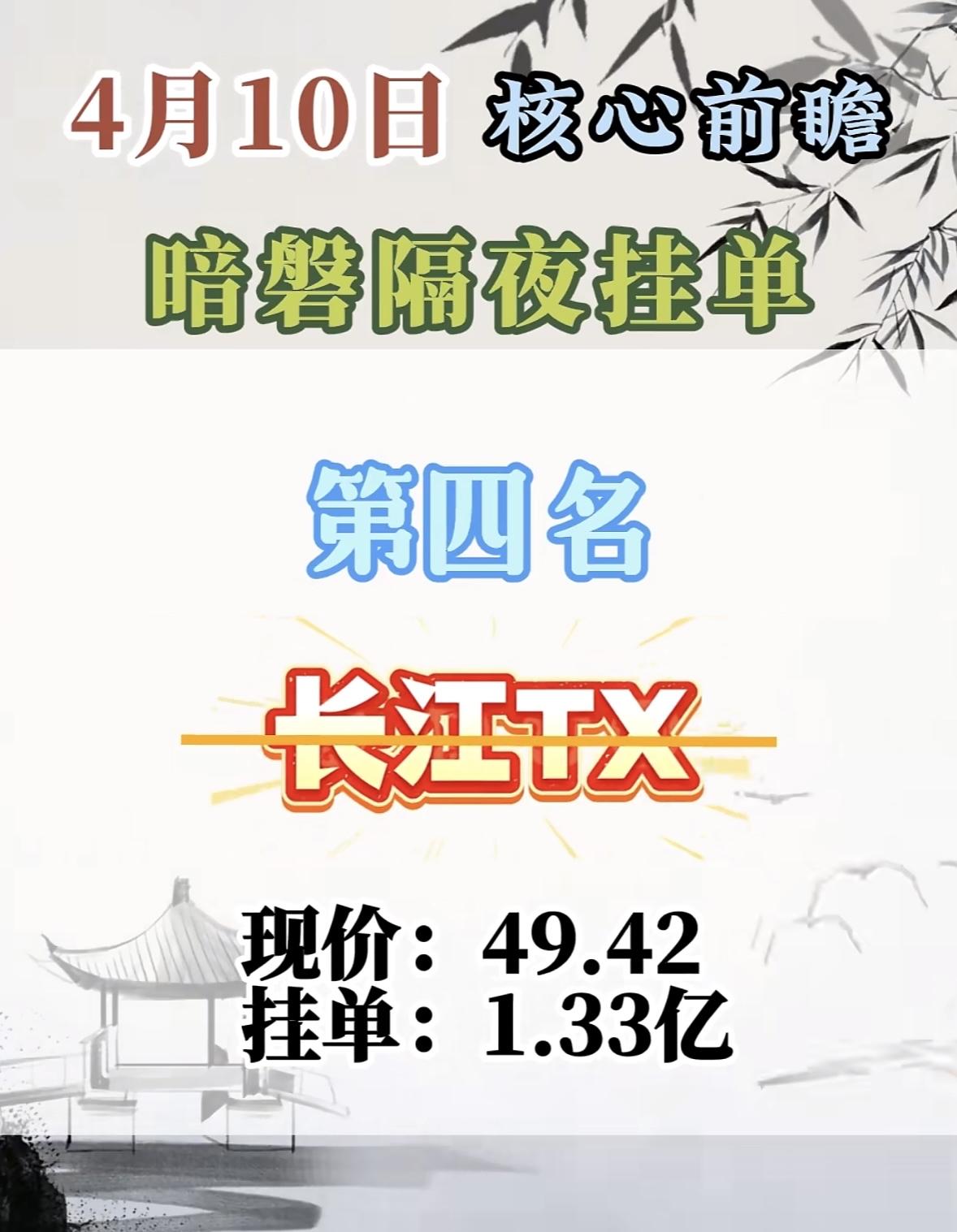 4月10日周五暗盘隔夜挂单排行榜出炉 4月10日这核心前瞻有点意思哈,暗盘隔夜