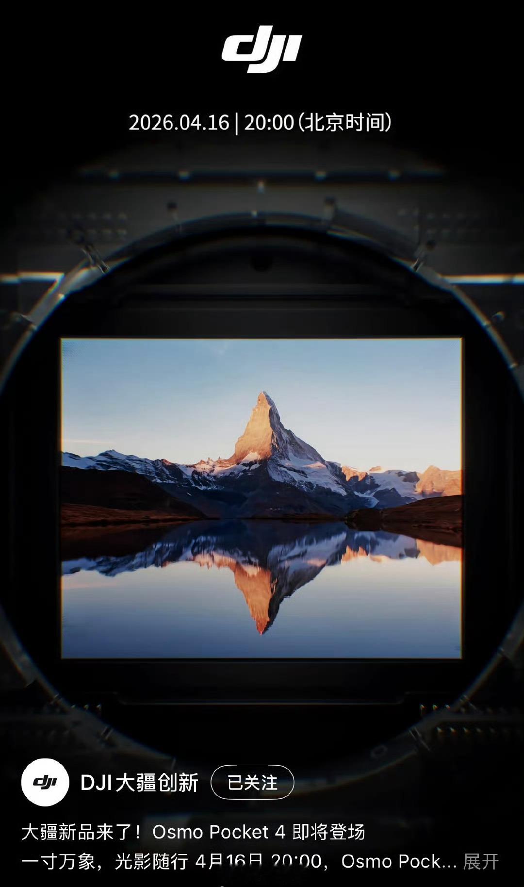 大疆OsmoPocket4官宣,4月16日登场,一英寸大底传感器。据说这次