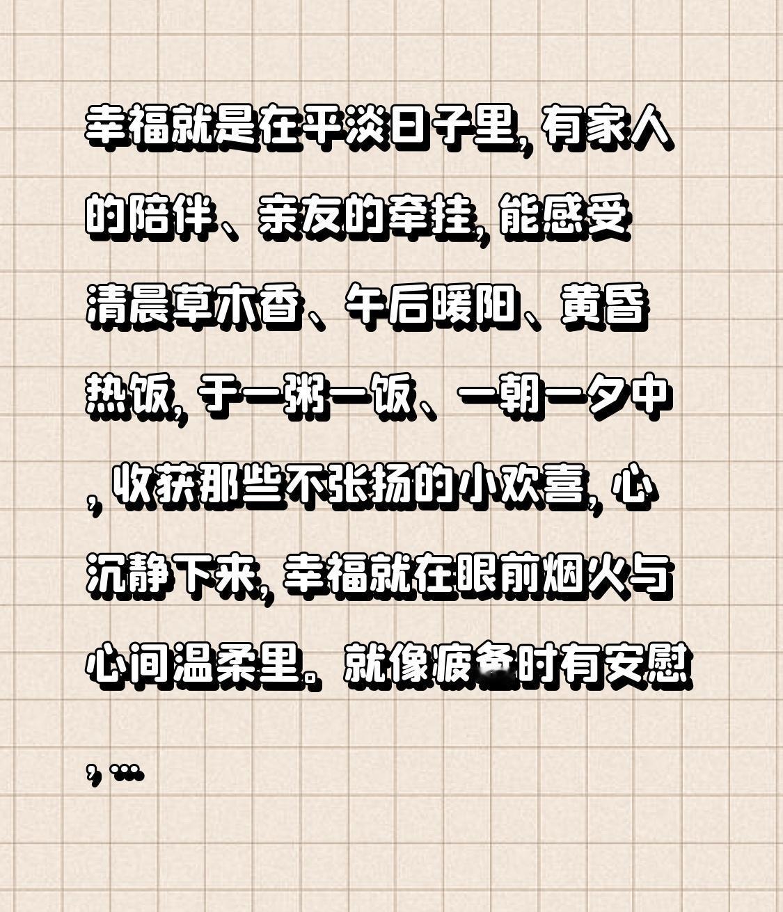 幸福就是在平淡日子里,有家人的陪伴、亲友的牵挂,能感受清晨草木香、午后暖阳、黄昏