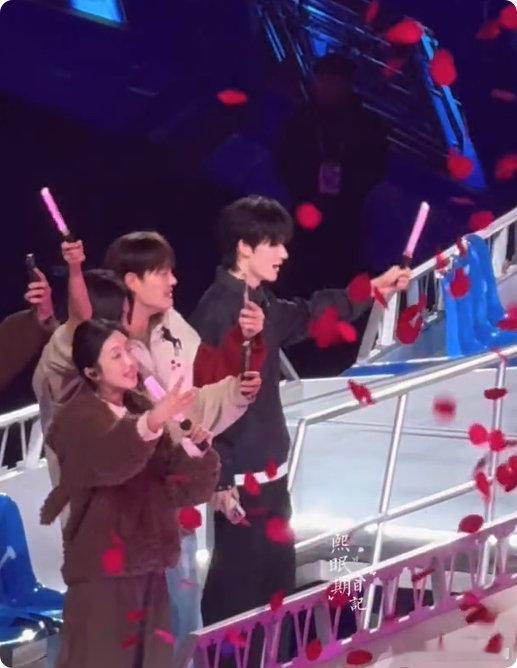 在张杰演唱会偶遇余宇涵余宇涵登上张杰鸟巢演唱会巡场小火车,梦幻同框直接双厨狂喜!