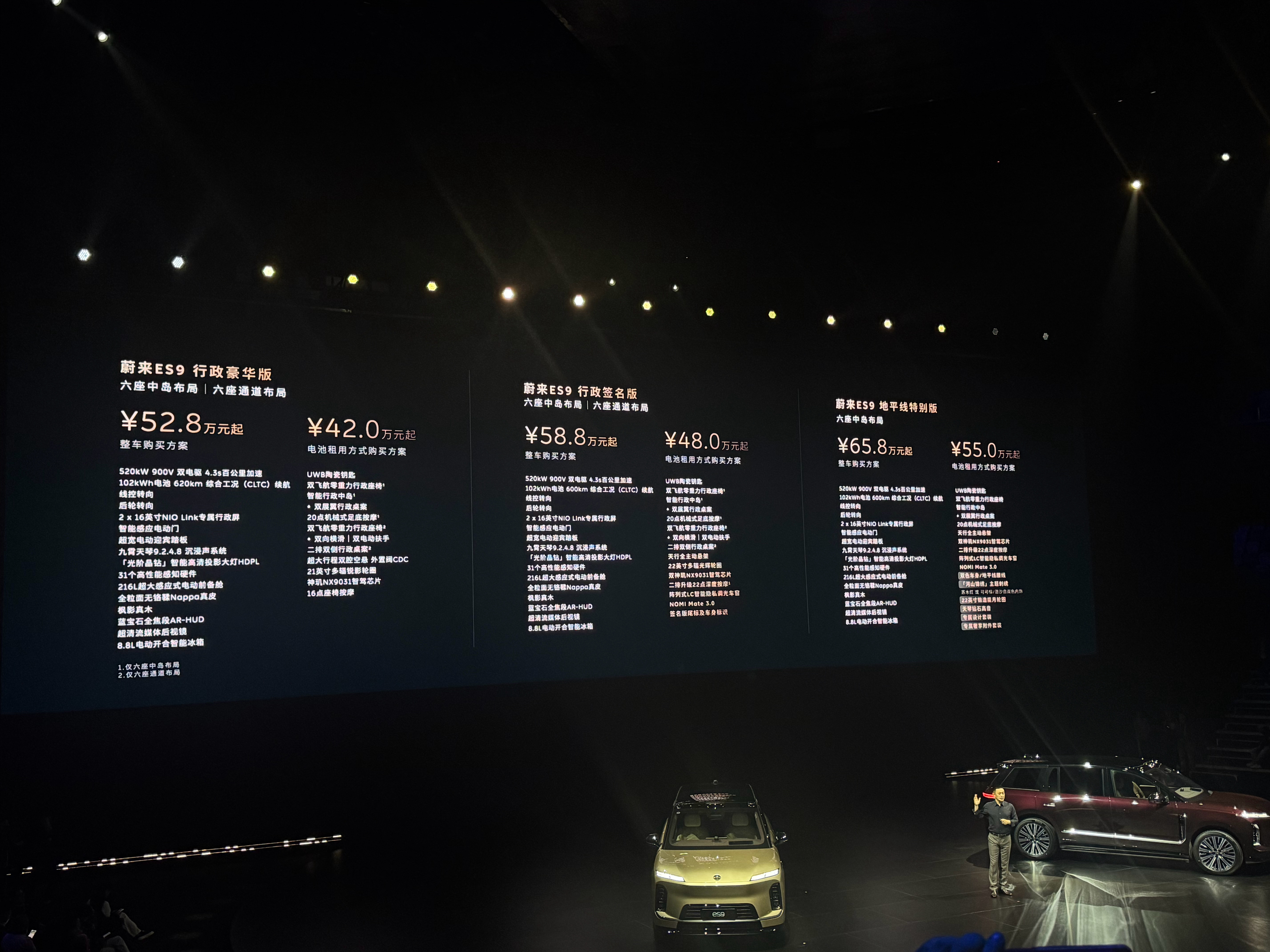 蔚来ES9价格来了,3个版型,整车价52.8 - 65.8万元,Baas 42万