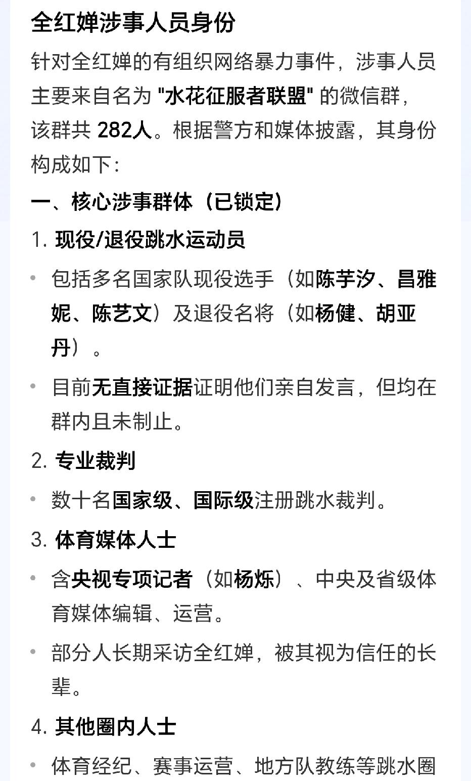 哪怕这个群里有现役、退役跳水运动员,专业裁判,体育媒体人士,都是婵宝信任的好朋友好长辈,没人站出来进行组织反驳,甚至是婵宝的行踪都被......