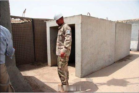 烽火问鼎计划 美军在科威特的比林军营内建设的防弹掩体,采用预制水泥件,这种掩体防御破片还是没有问题的,但是如果直接命中就防不住了。