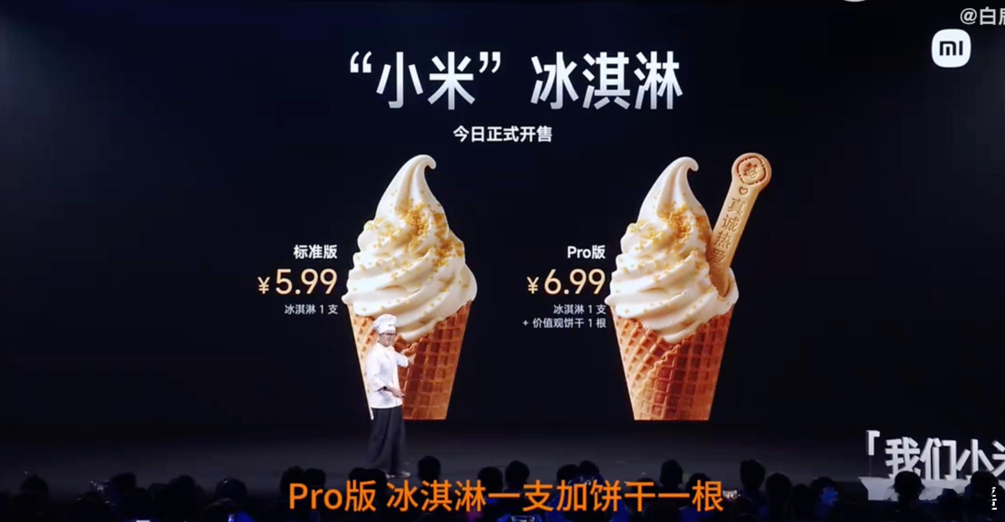 小米麻花主理人推出新品---小米冰激凌用料采用真“小米”小米冰淇淋真有小米 经过3大次技术研发,一路复盘终于做出了口感佳,味道好的冰激凌产品上市发布会进入尾声大家期待的价格也随着出炉标准版:5.99rPro版:6.99rMax版:8.99r这一套流程下来雷总开心的合不拢嘴了看过雷总将发布会的都知道,有感染力,感觉更像是在聊天好嘛,我感觉你们有点一脉相承,小米麻花主理人讲发布会也很有趣下次产品上市叫他过来讲,或者在发布会门口派发冰激淋