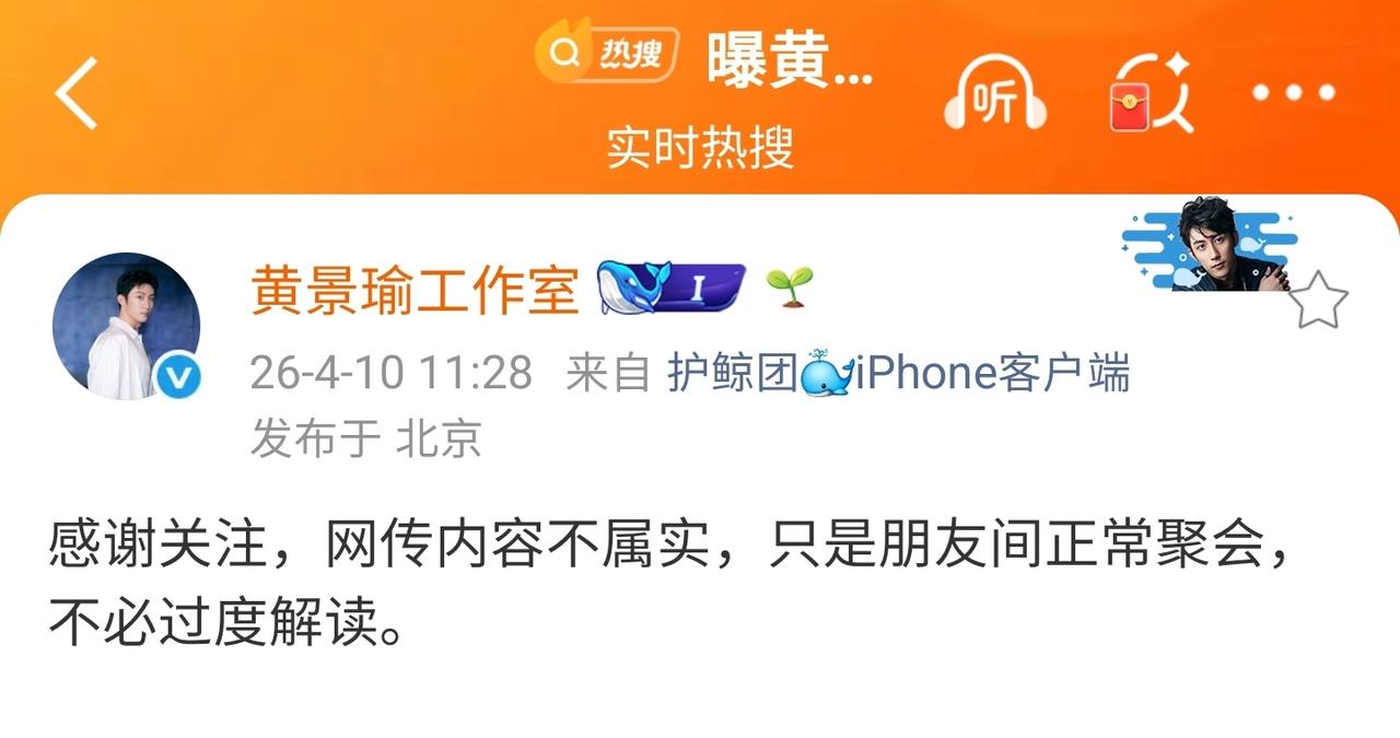黄景瑜工作室这辟谣速度好快