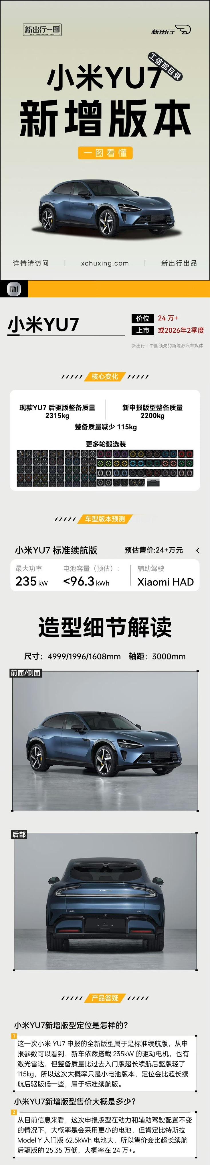 最香的是价格,预计直接下探到24万级,比Model Y入门版便宜2万多,尺寸、配置、智驾全方面碾压,这性价比真的杀疯了!本来YU7销量就一直很能打,这下24万就能拿下中大型纯电SUV,想买电车的朋友真的可以等等了!