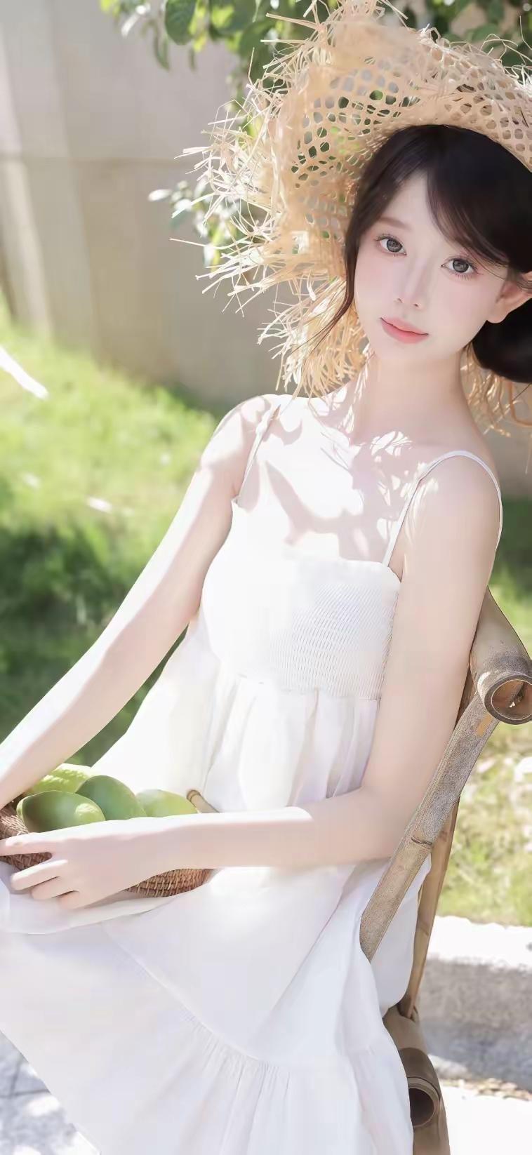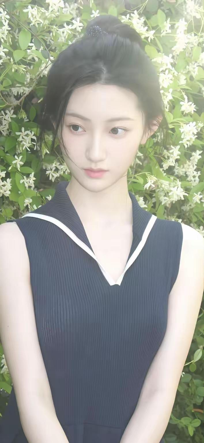 夏日清新少女,绿意盎然背景,甜美笑容,自然妆容,优雅发型,清新自然,少女心满满。