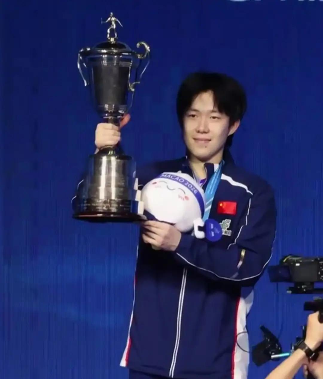 在2026年国际乒联澳门单打世界杯男单决赛中,当日本18岁的松岛辉空在七局四胜制的比赛中拿下第三局以3:2领先,在比赛间隙叫嚣看我要拿冠军时,我们的王楚钦“恼”了,板板针对松岛辉空的弱点,连赢两局,以4:3逆转松岛辉空,拿下这枚沉甸甸的男单金牌!这也是王楚钦首次拿到世界杯的男单冠军!