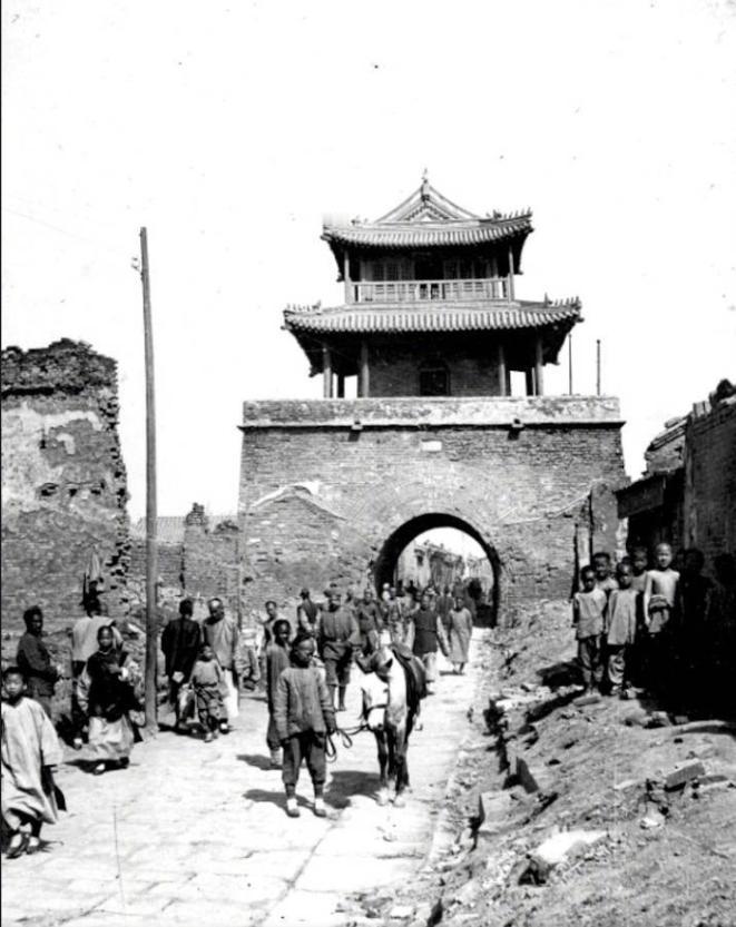 镜头里的每一个身影,都是乱世中挣扎的大清子民,有穿长衫、短打的汉族百姓,有身着旗装的满族妇女,有牵马的行脚商人、围观的孩童,城墙没了,城楼破了,但日子还要继续,孩童们赤裸着上身、衣衫破旧,眼神里满是对镜头的好奇,却不知自己正身处一个古老帝国崩塌的时代。