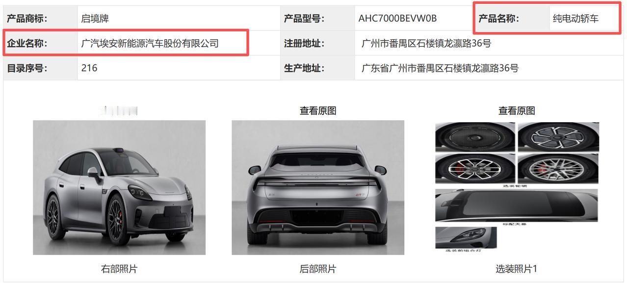 从申报图看,启境 GT7标配了大尺寸天幕,通透感拉满;还能选装不同样式的轮辋和前组合灯,个性化空间不小。车身姿态低趴,尾部线条干脆利落,加上“右部照片”和“后部照片”里隐约露出的贯穿式尾灯,整体很有“小超跑”那味儿。不过内饰还没公开,希望埃安能把运动氛围做足,别浪费了这套帅气的外形。