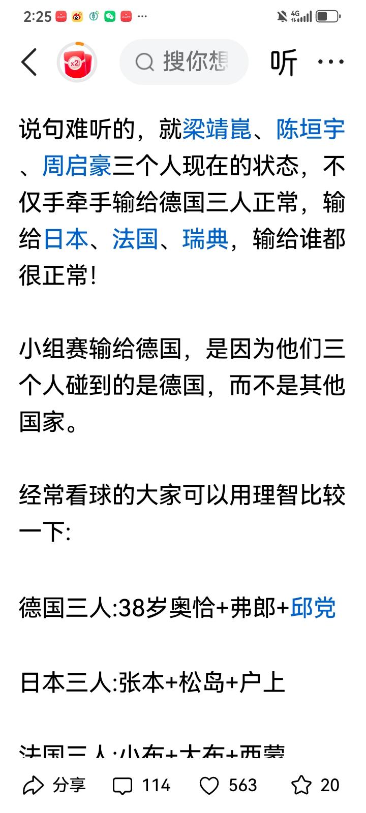 世乒赛团体赛还没打呢,她就开始说国乒输了球,不自身找原因甩锅一个不参赛的人,真的让人看不起,这个团体连路过的狗看了都嫌弃,和这个项目的网友一起也是倒霉,每天气血直冲脑门[捂脸][捂脸][捂脸]