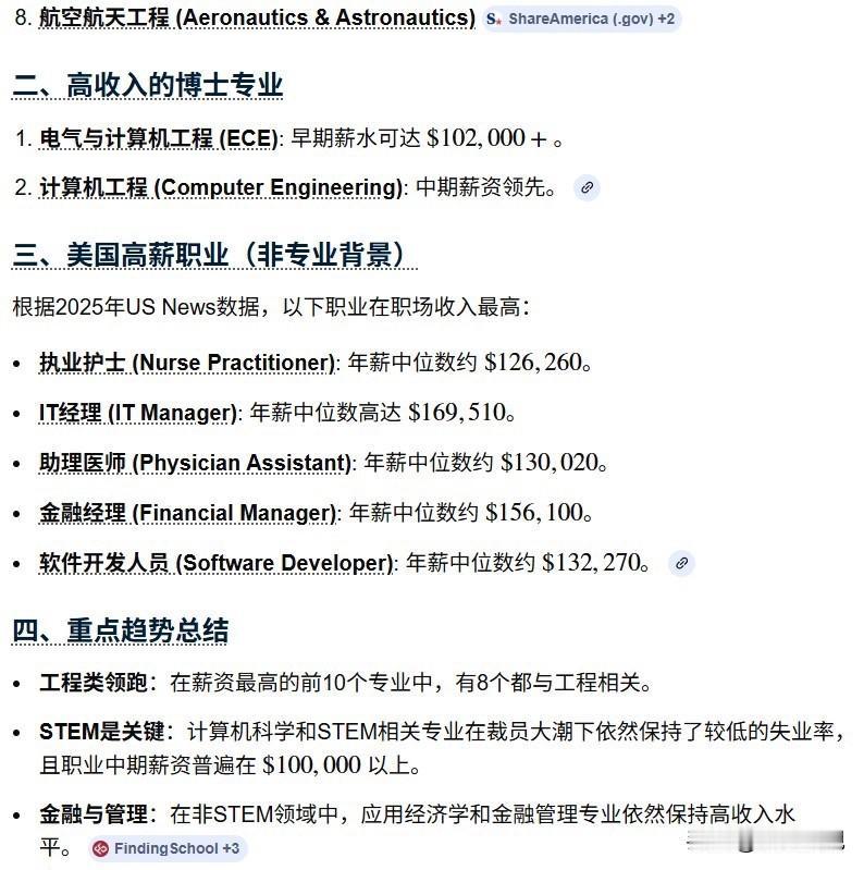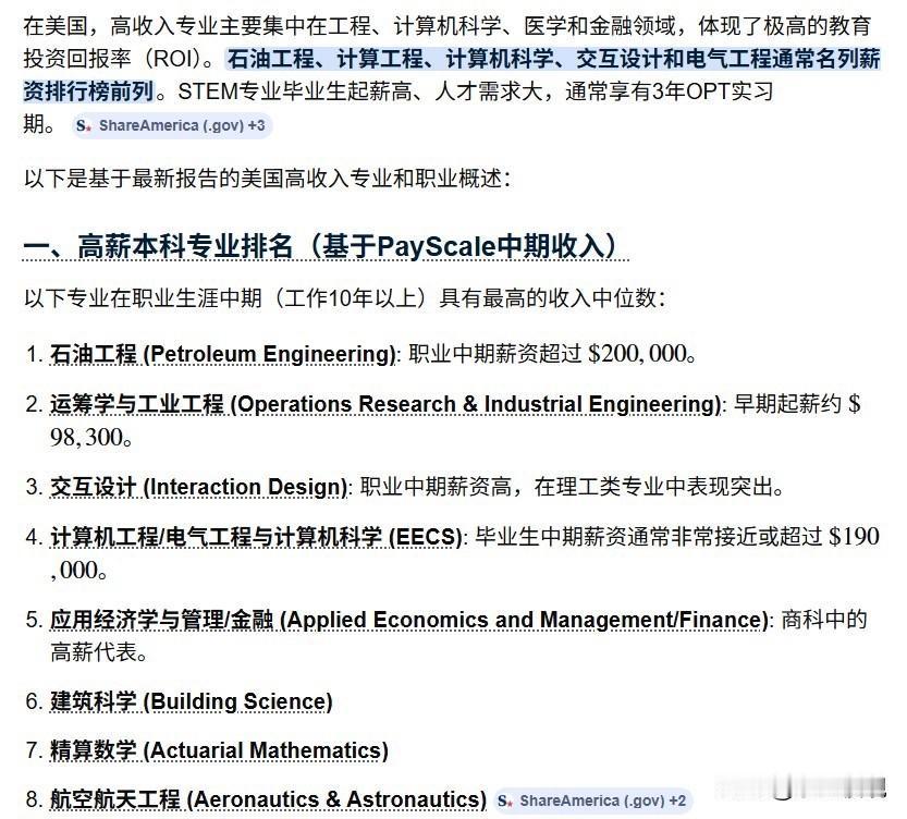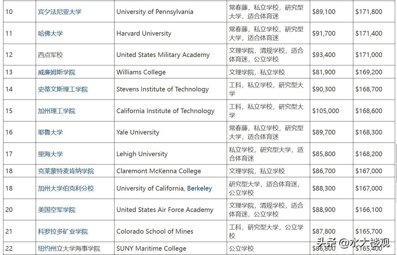 美国大学的本科毕业生的工资排名
