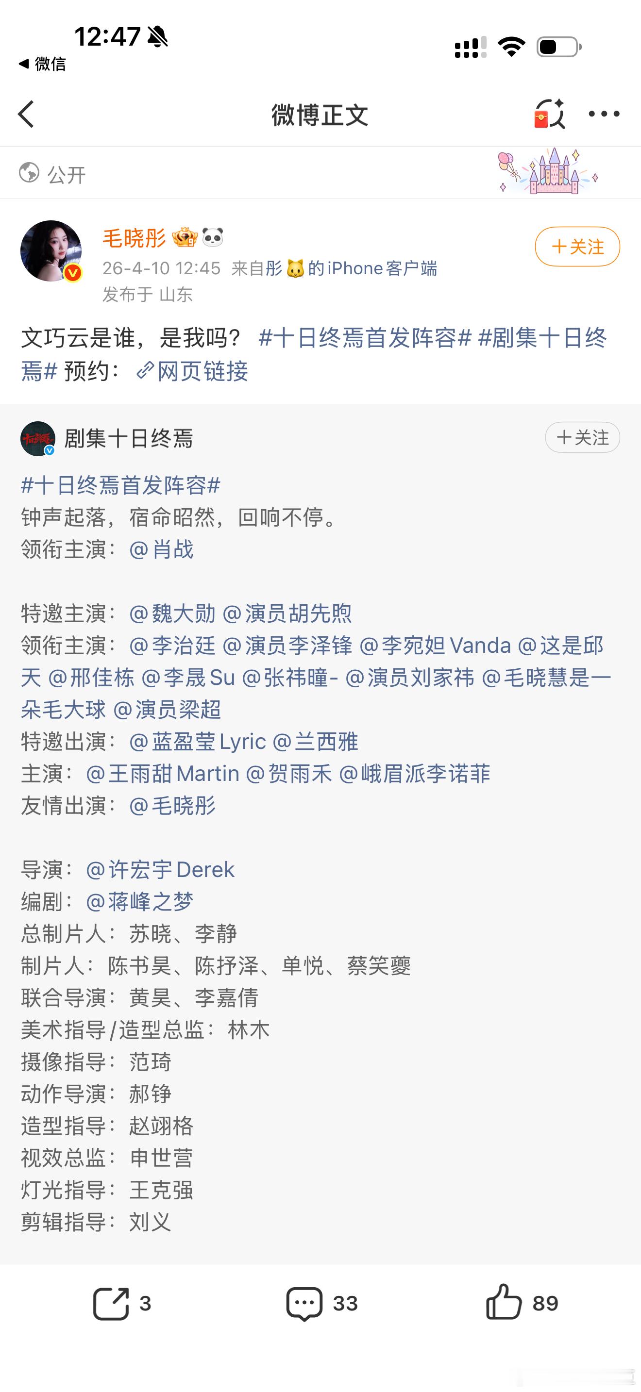 毛晓彤回应出演十日终焉肖战毛晓彤合作十日终焉 毛晓彤演绎文巧云这类疯狂却深情的角色太有挑战性了!她这次的演技让人热切期待,不容错过!