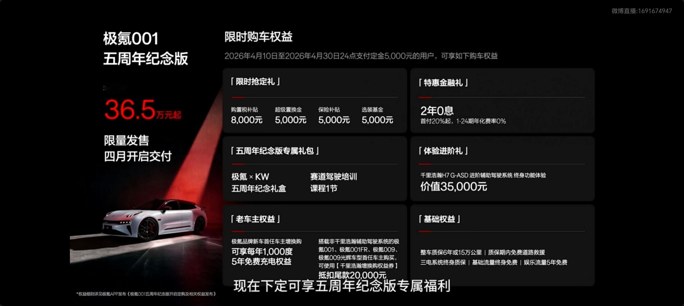 对了,极氪001五周年纪念版也来了:36.5万起,四月下旬交付。Thor-U芯片、千里浩瀚H7、680km续航、零百2.91秒、925马力,原厂KW绞牙避震,碳纤维大尾翼+黑曜红内饰,属于性能控的终极礼物!