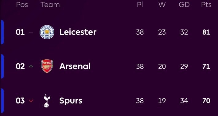 🔴阿森纳英超领先9分争冠⚪️热刺英超跌入降级区🔵莱斯特英冠跌入降级区