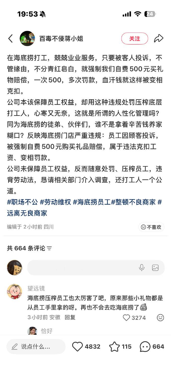 海底捞礼物 员工罚款购入海底捞员工管理争议持续发酵,体罚、罚款、“点炮制度”等高压手段被曝光。企业需平衡服务标准与员工权益,避免“以罚代管”透支品牌口碑。尊重员工不是口号,而是服务温度的源头,当员工沦为“罚单机器”,所谓“极致服务”终将沦为冰冷的机械表演。