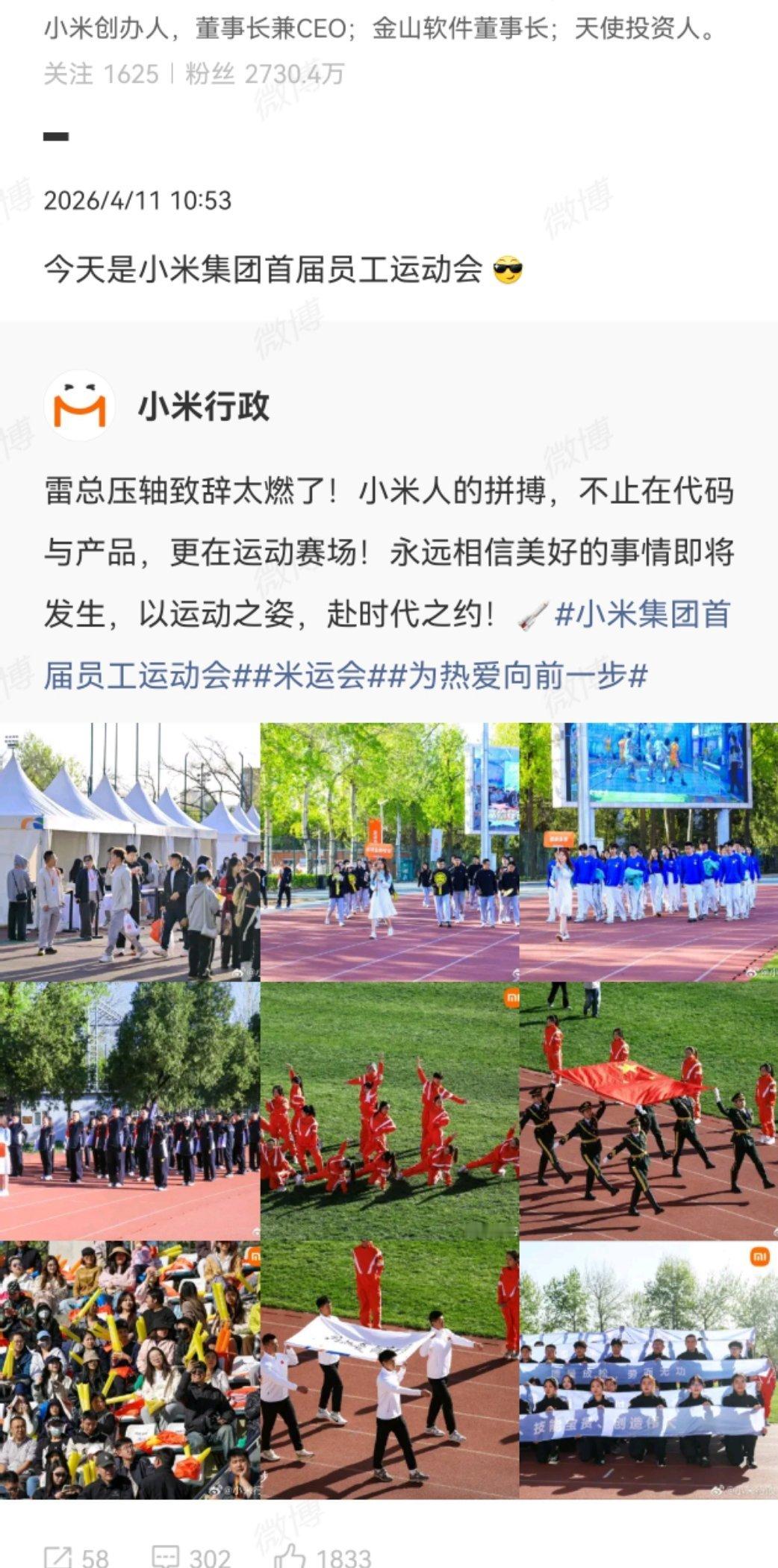 小米周末举行员工运动会 小米第一届员工运动会在11日举行,刚好是周六,所以评论区