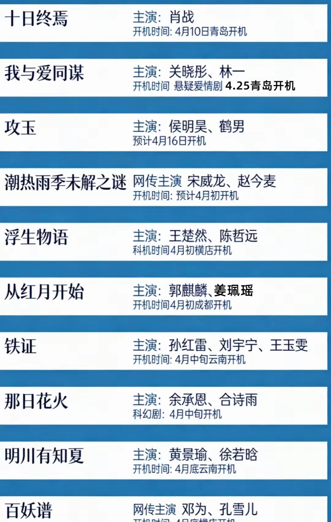 内娱新一波换乘恋爱&即将开机的新饼,有你最期待的?张婧仪、李现合作现偶《雾里青》王楚然、陈哲远合作神话剧《浮生物语》文淇、周柯宇合作电影《一觉醒来十五年》张淼怡、敖瑞鹏合作古装剧《错世》孙千、屈楚萧合作现偶《月下烟火》徐若晗、黄景瑜二搭现偶《明川有知夏》邓恩熙、董思成合作古装剧《恰逢春》代露娃、赖伟明合作古装剧《宝珠》横店开机关晓彤、林一合作微短剧《我与爱同谋》鹤男、侯明昊合作古装剧《攻玉》朱一龙、刘浩存等主演电影版《千里江山图》赵今麦、王安宇疑似合作《一念江南》虞书欣、何与疑似合作《神仙肉》杨幂、刘学义合作古装剧《江山大同》横店开机