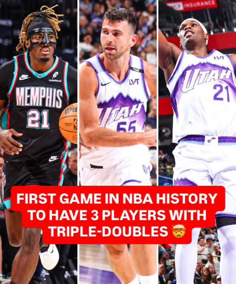 一场比赛三人三双创NBA历史 NBA历史首次!4月10日爵士vs灰熊,三人同场三双:灰熊马沙克13分15板14助,爵士康查尔11分11板10助、贝兹-姆本27分11板11助微博。两队仅6-7人轮换,替补也能刷三双,数据狂欢 + 历史纪录,这比赛太疯狂!