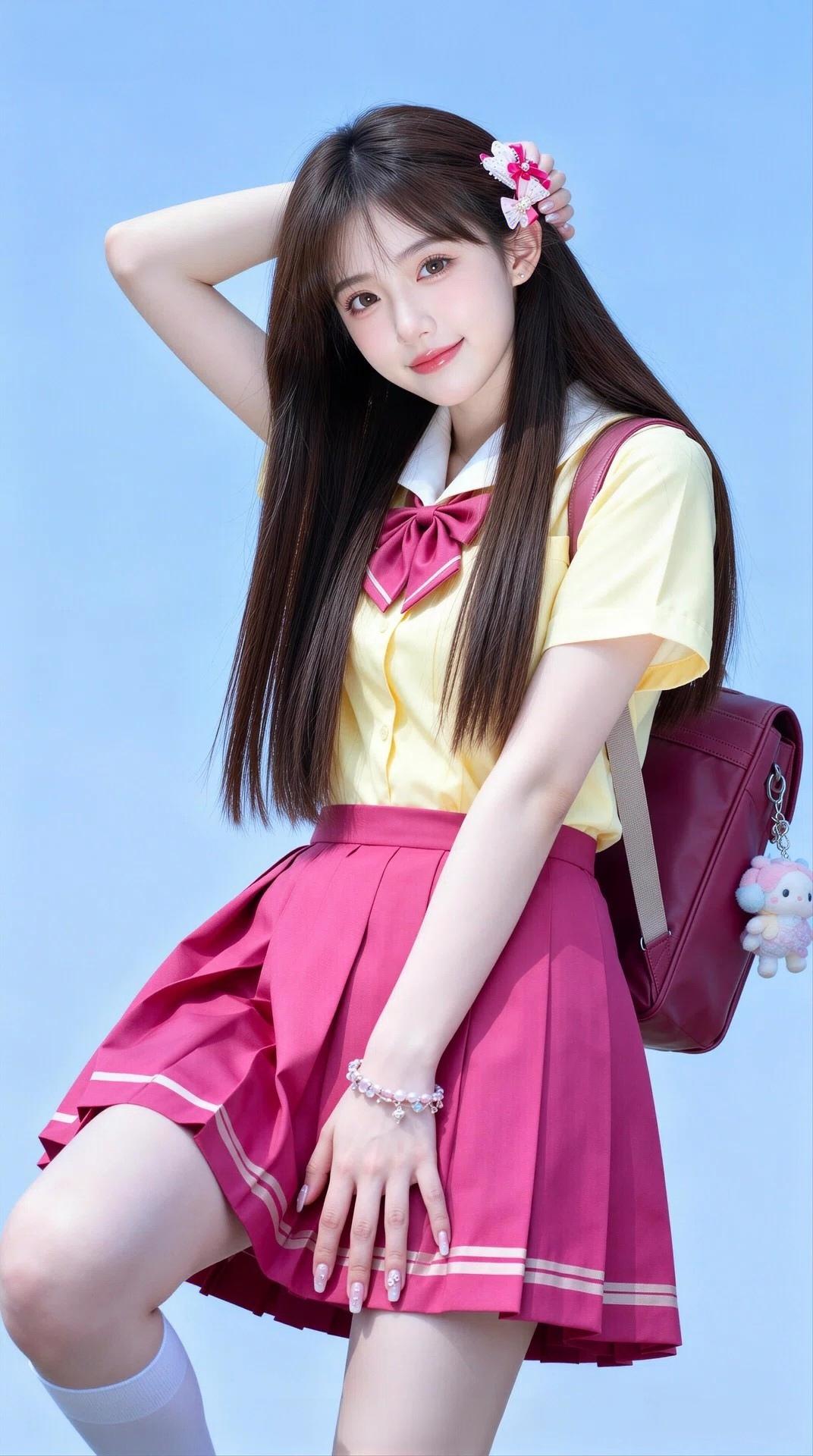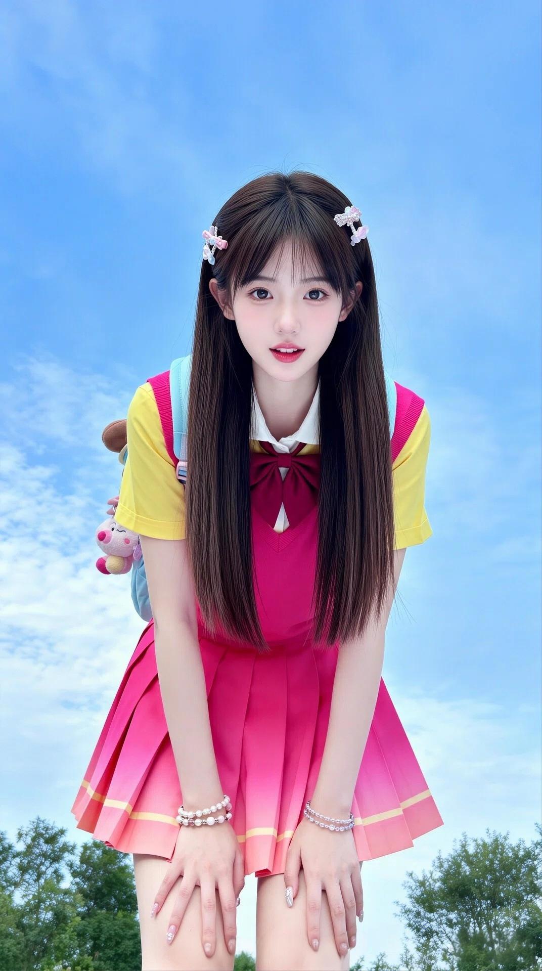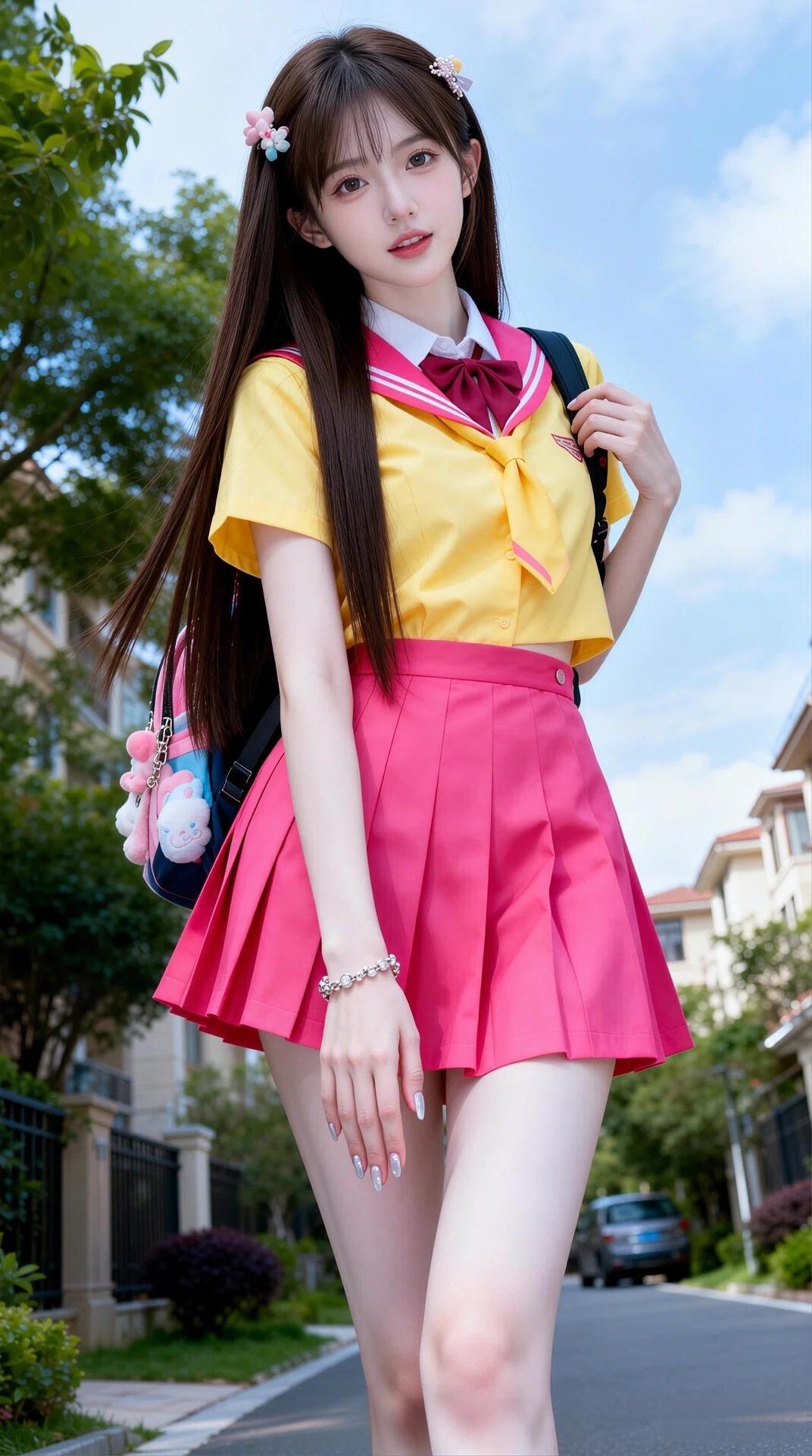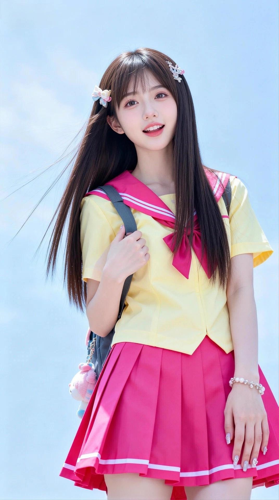 元气少女身着美丽鲜艳的校服,洋溢着灿烂的青春与无尽的活力🌞💖清纯校服风 青春