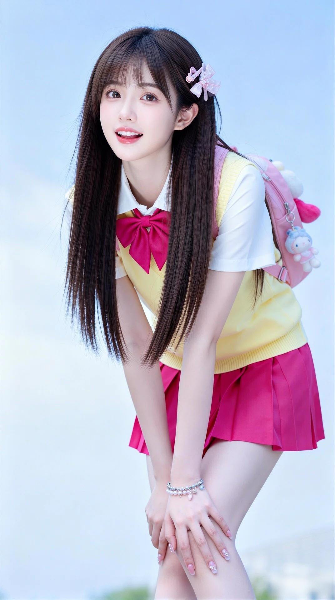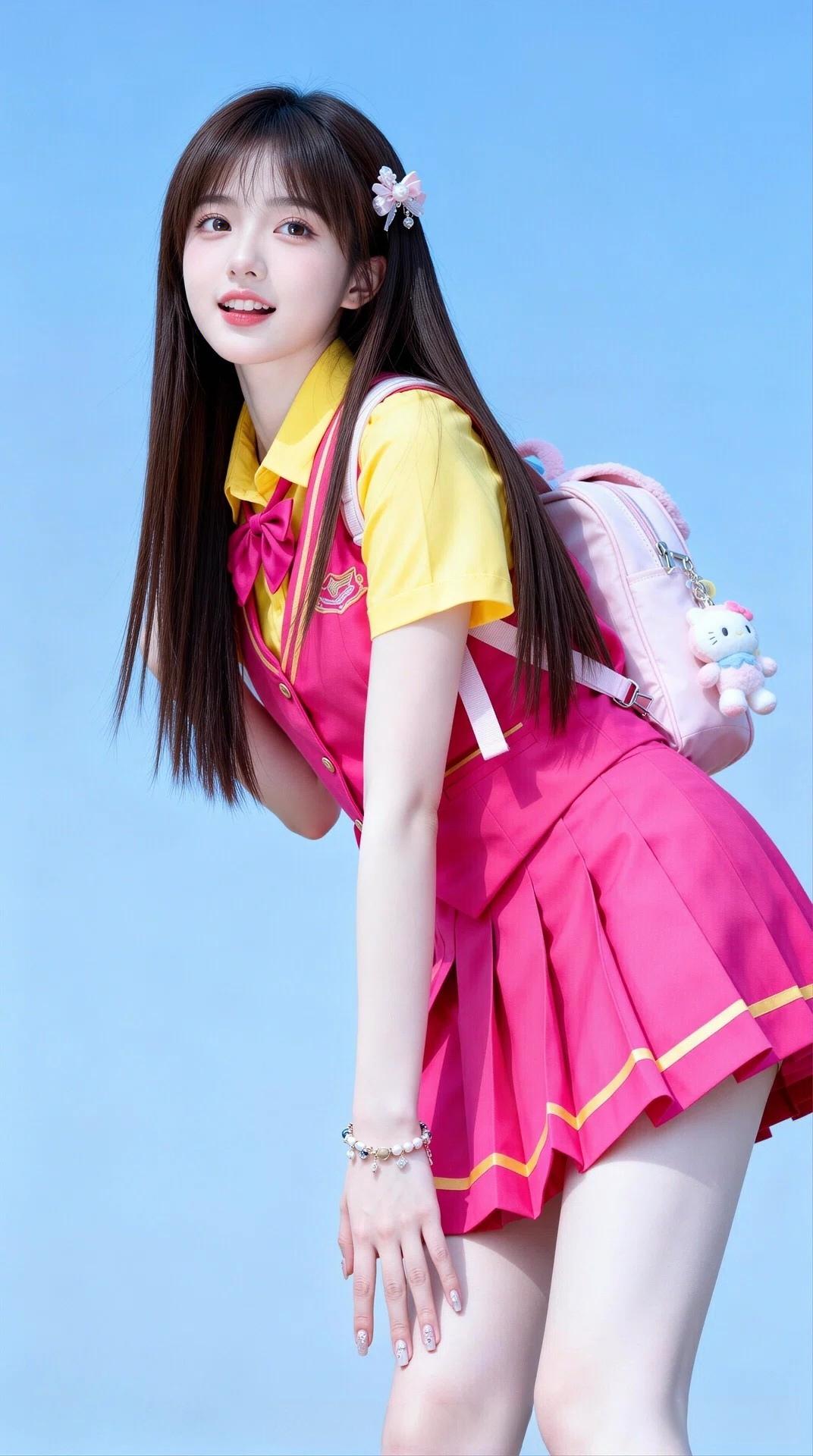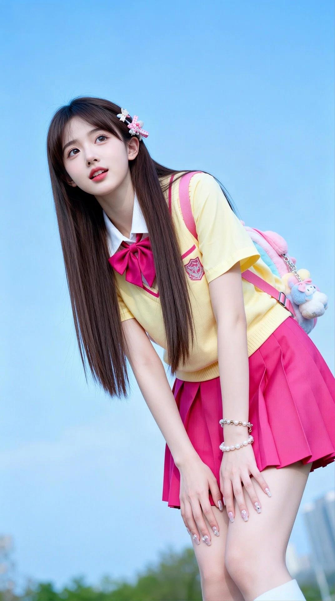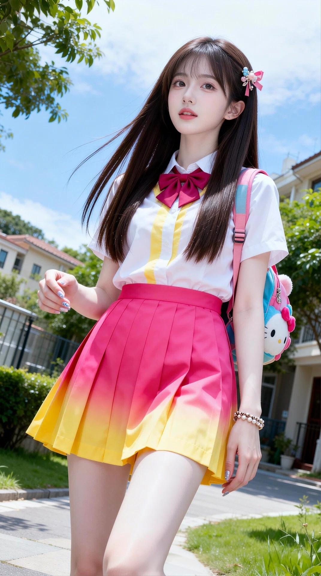 元气少女身着美丽鲜艳的校服,洋溢着灿烂的青春与无尽的活力🌞💖清纯校服风 青春