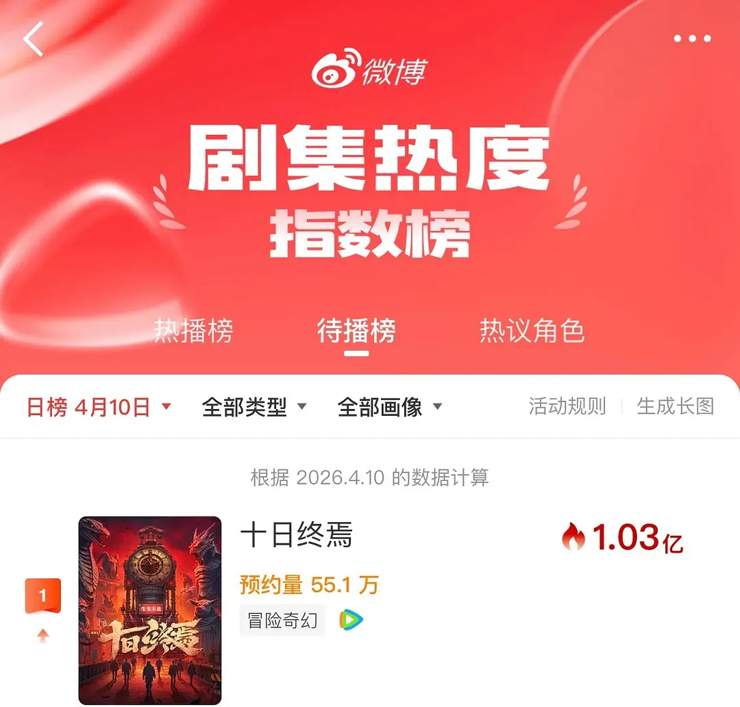 扛剧的神没惹任何人,就这样仰望真神吧 谁家刚开机就发战报,原来是我家十日终焉,恭喜《十日终焉》成为首部蓄水期微博指数破亿剧集!十日终焉