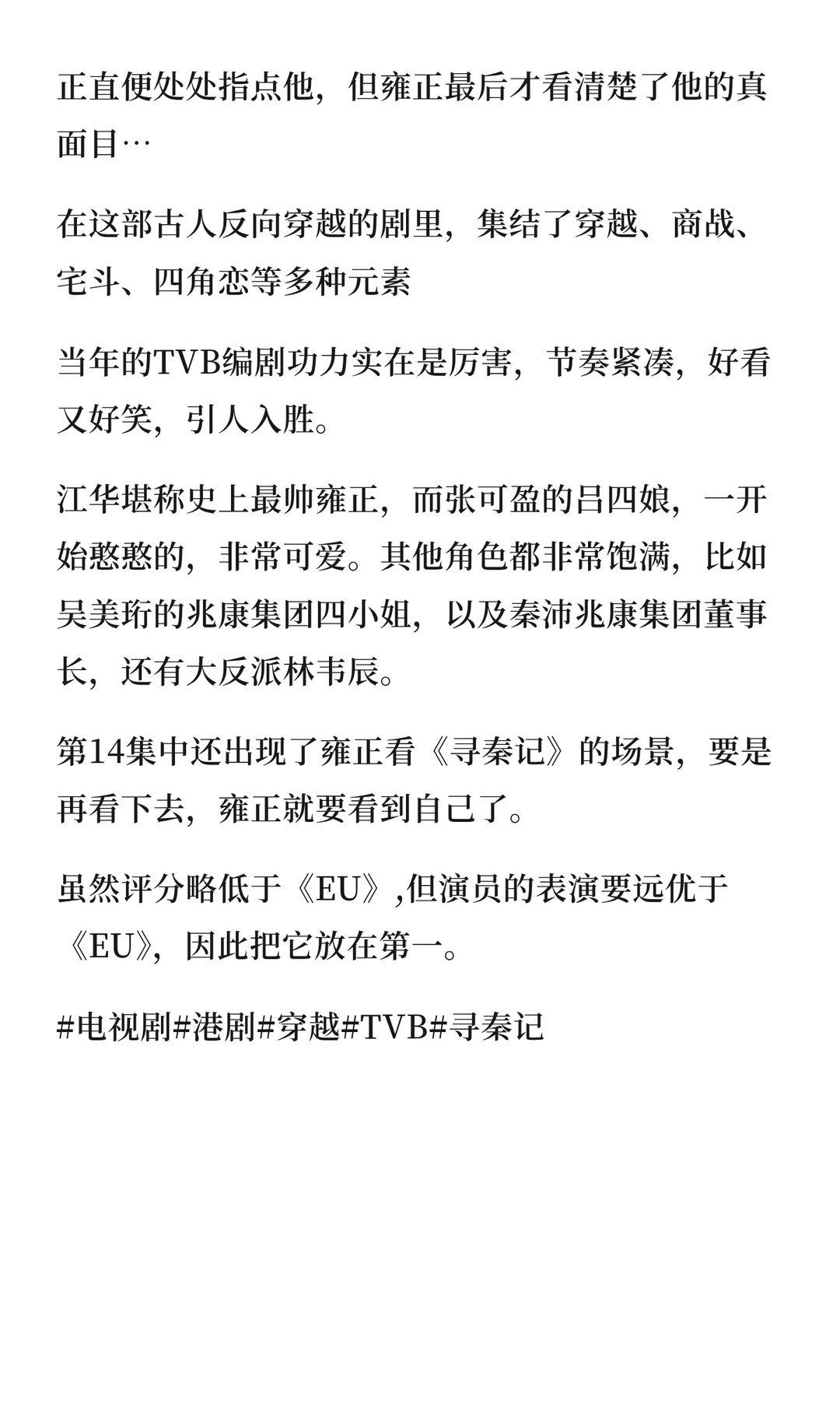 TVB港剧 怀旧港剧 怀念经典影视 高分电影 好看国产剧推荐 穿越 寻秦记