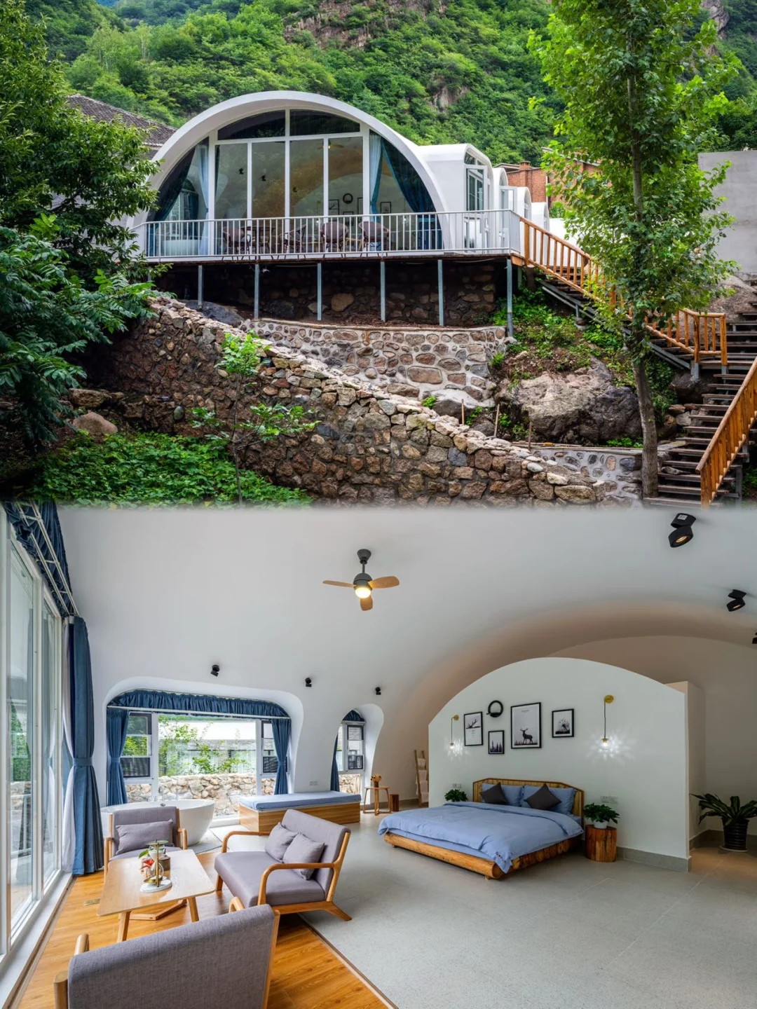 海拔600米,全透明穹顶。春天的山风还带着凉意,但阳光已经暖了。白天看山花次第开放,晚上躺着等银河升起来——民宿有专业望远镜,记得预约。
