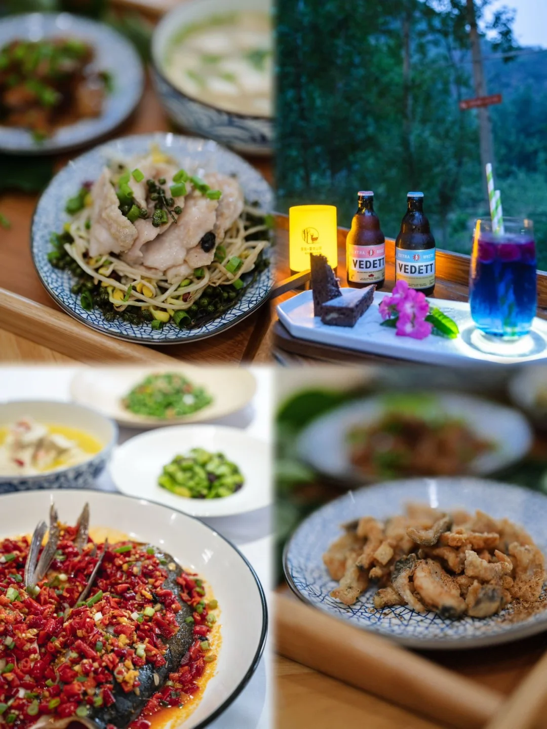 溪畔露营下午茶、林荫咖啡、泥炉披萨……春天的阳光是柔和的,坐在户外,风吹过来都是青草味。晚上还有篝火烧烤,裹着毯子烤棉花糖。