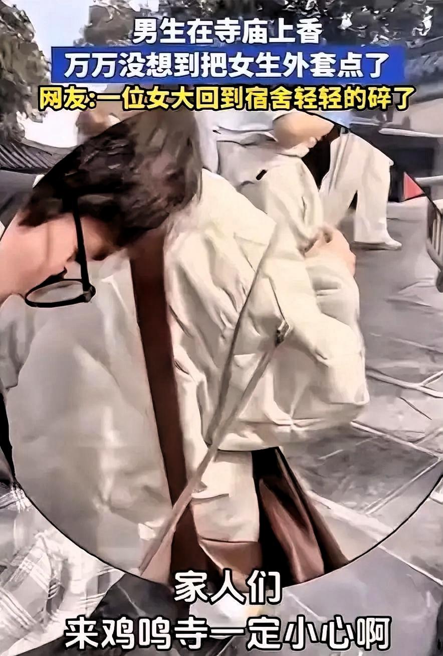 缘分呀!江苏,一男生去寺庙上香,想求一份姻缘,万万没想到,起身时没留意,香头不小心碰到身旁女生的羽绒服袖口,烧出了一个小洞。