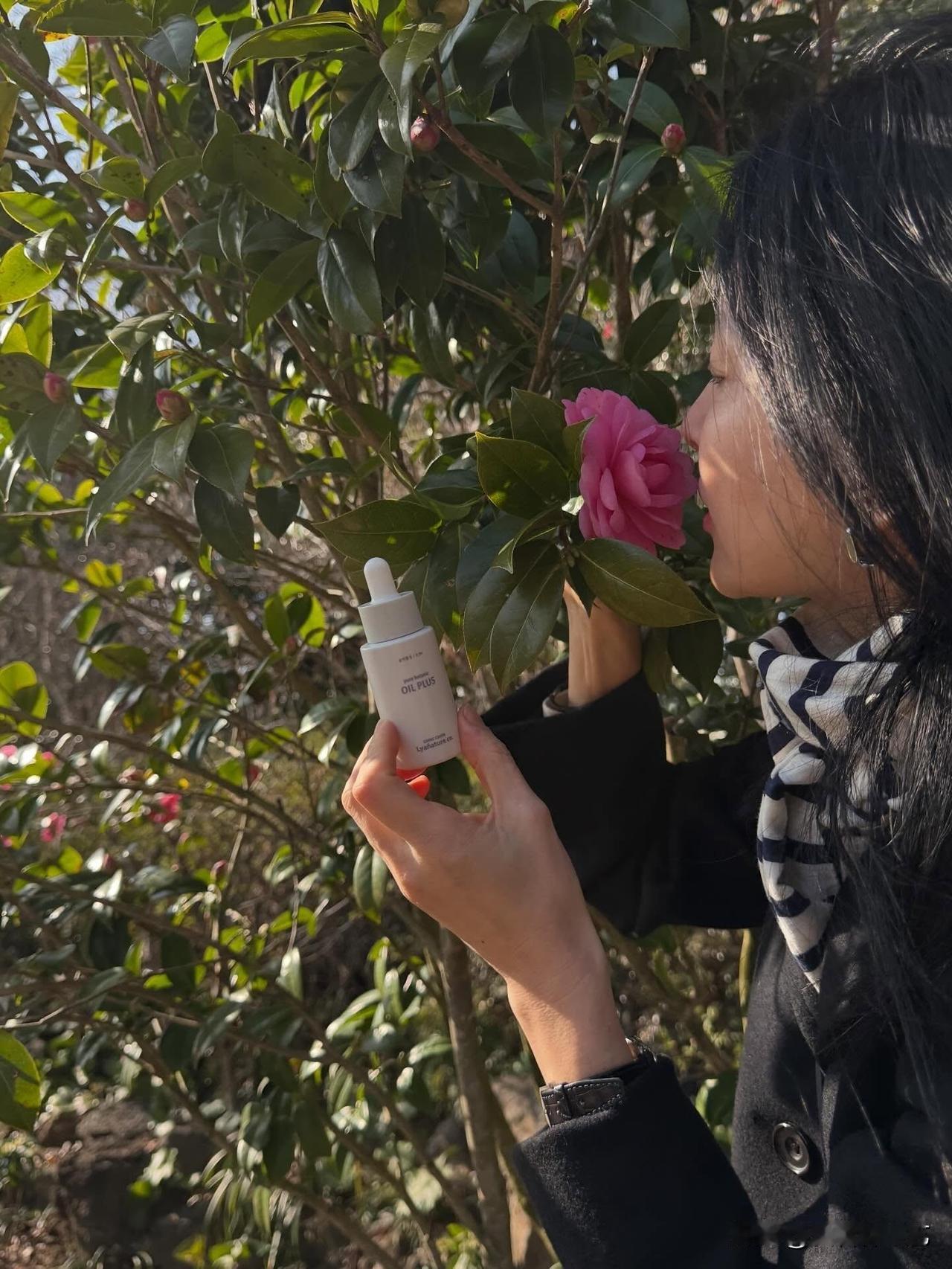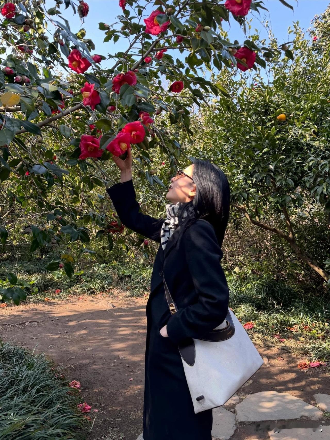 公开的照片中,李英爱笑眼弯弯,轻轻将脸凑近一朵盛放的山茶花,鼻尖几乎要碰到花瓣,专注地嗅着沁人的花香。她周身的光彩与娇艳的山茶花交相辉映,仿佛春日里最明媚的两抹亮色,温柔又动人。