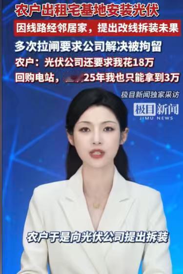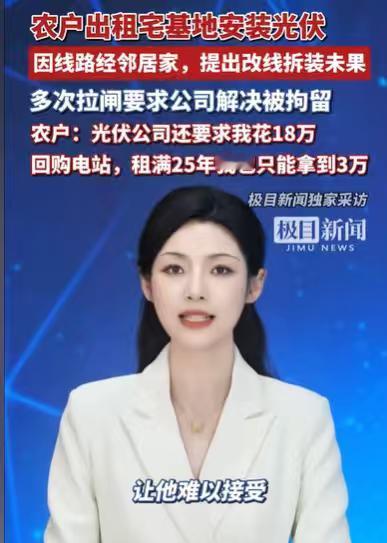 河北廊坊,男子有200多平方米的宅基地,一直空置着,他就想着租给光伏公司安装光伏,每年挣1200元租金,不料光伏安装好了,钱还没有挣到,他就被拘留了,还被索求18万。