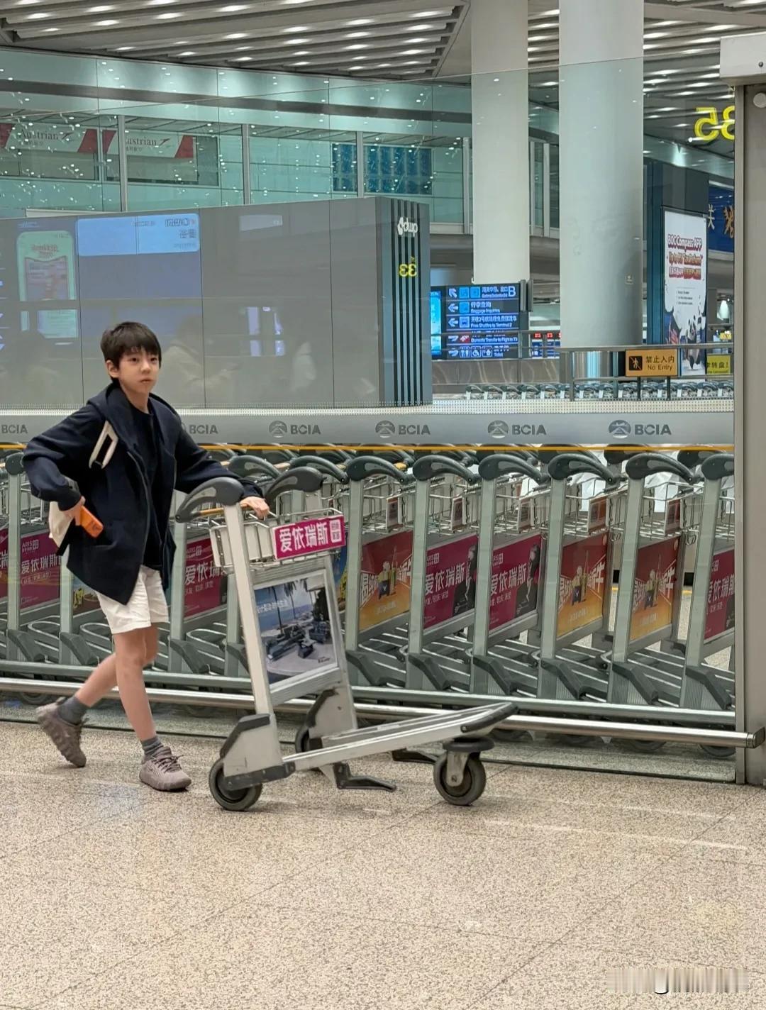 网友在北京机场偶遇霍思燕母子俩从曼谷返京,霍思燕带着棒球帽,长发披肩,穿着灰色卫衣配红色格子短裙,素颜看着脸微微发福,但是身材微丰却看着很好看。