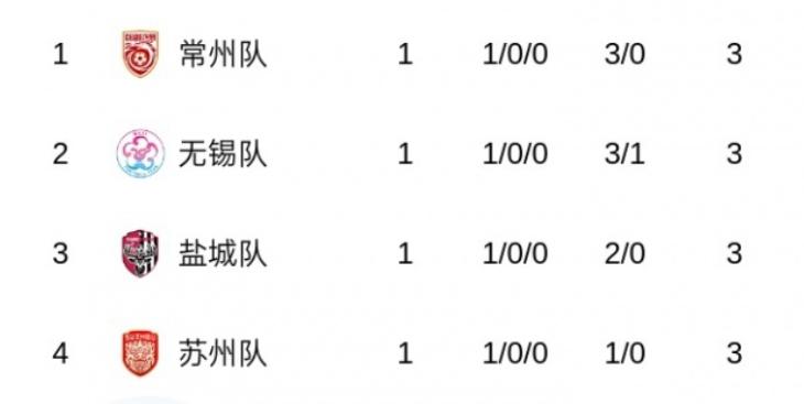 苏超第1轮,上赛季被调侃为“太湖三傻”的苏州队、无锡队和常州队,进化为“太湖三宝”,全部获胜。其中常州队一改上赛季的疲弱3-0大胜上届亚军南通队,苏州队1-0击败扬州队,无锡队3-1击败镇江队。他们三队与盐城队一同领跑苏超。下周南京,宿迁,徐州,泰州淮安将出战。每周都有比赛的苏超又开启了江苏的消费季![呲牙][呲牙][呲牙]